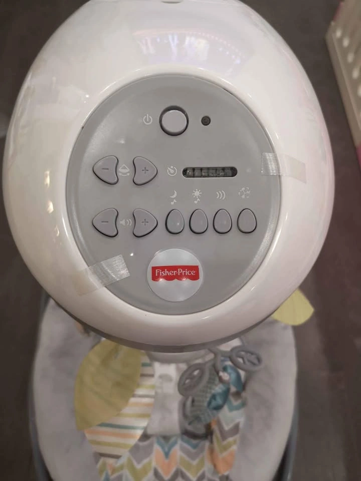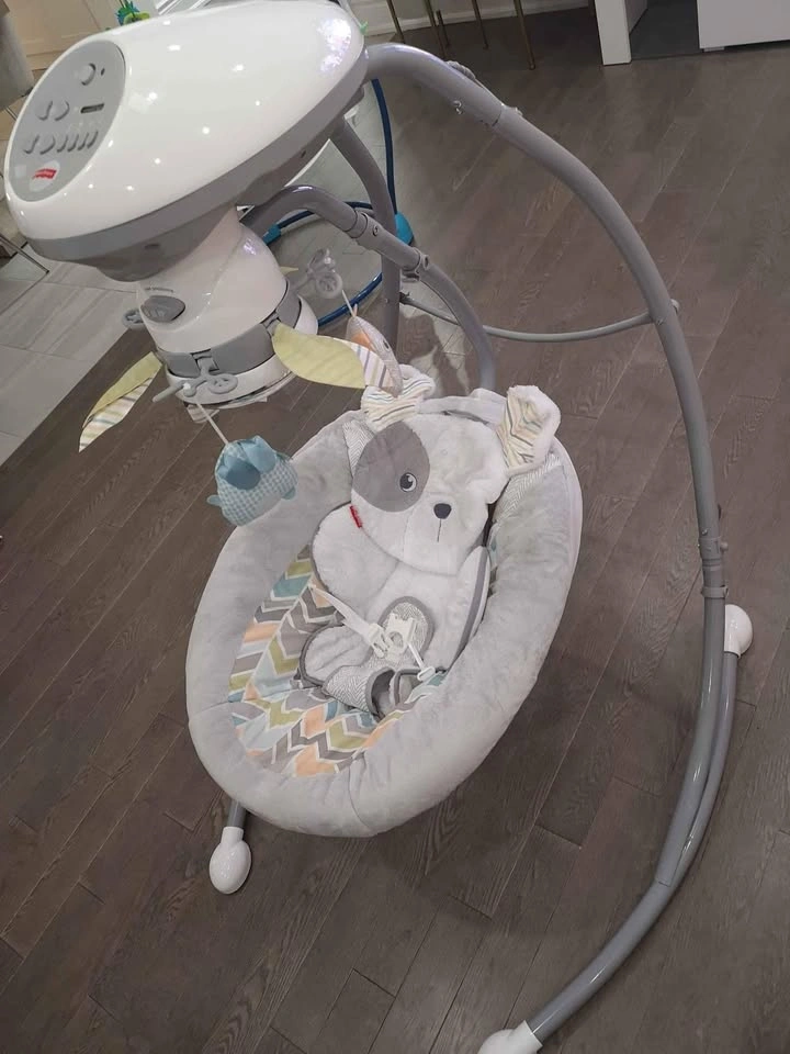 Off/on switch works but sometimes you have to slide a few times for it to illuminate. Dual-motion baby swing can rock side-to-side or head-to-toe, with adjustable recline positions and speeds so you can find the perfect calming combination for baby. Adjustable seat recline, 6 swing speeds, 16 soothing songs and nature sounds. Linkable clackers for play and motorized mobile with dome mirror and 3 soft toys overhead to encourage eye-tracking. Machine-washable seat pad and removeable plush support and canopy. Legs fold for storage and travel; AC plug option helps save on batteries! Max weight: 25 lbs $60 or best offer