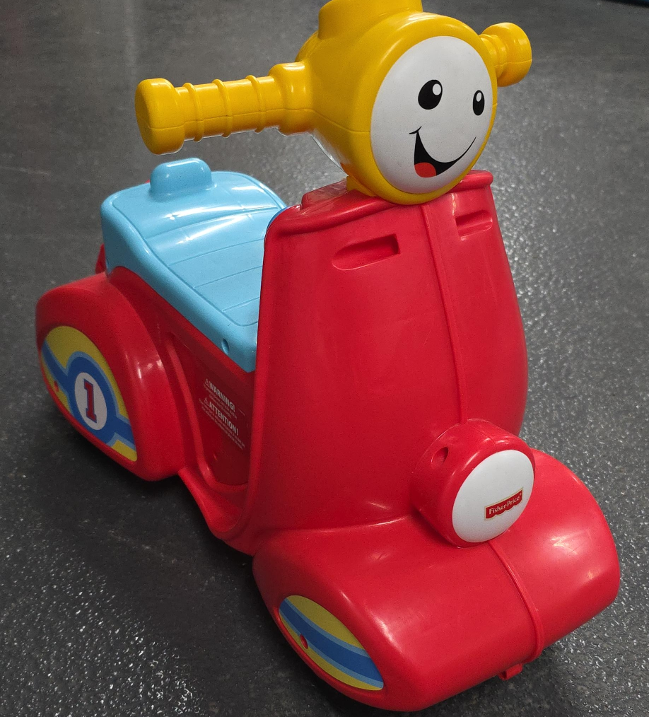 Vroom vroom! This Fisher-Price ride-on scooter is ready for a new little driver. It's in great condition and features a fun, colourful design that kids will love. Perfect for indoor or outdoor play, this scooter will provide hours of entertainment and help develop motor skills