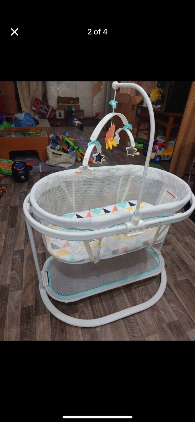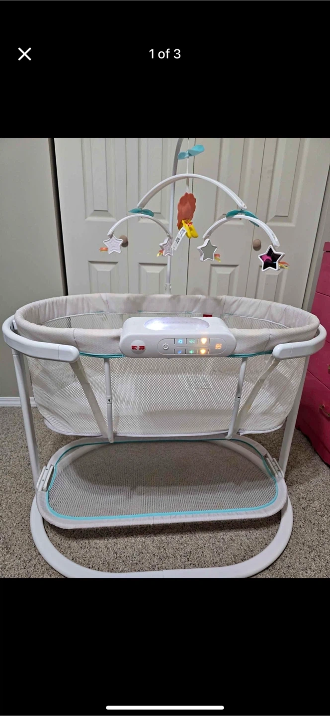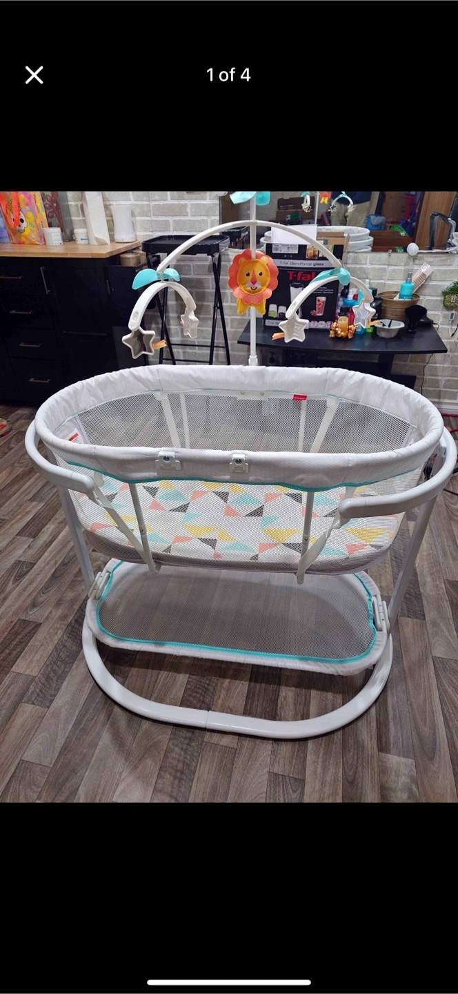 10Selling a Fisher-Price Soothing Motions Bassinet! It's in great condition and ready for a new little one. This bassinet features gentle rocking motions, calming vibrations, and soothing sounds to help your baby drift off to sleep. It also has a mobile with cute toys to entertain your baby during awake time. Perfect for keeping your little one close by during those early months
