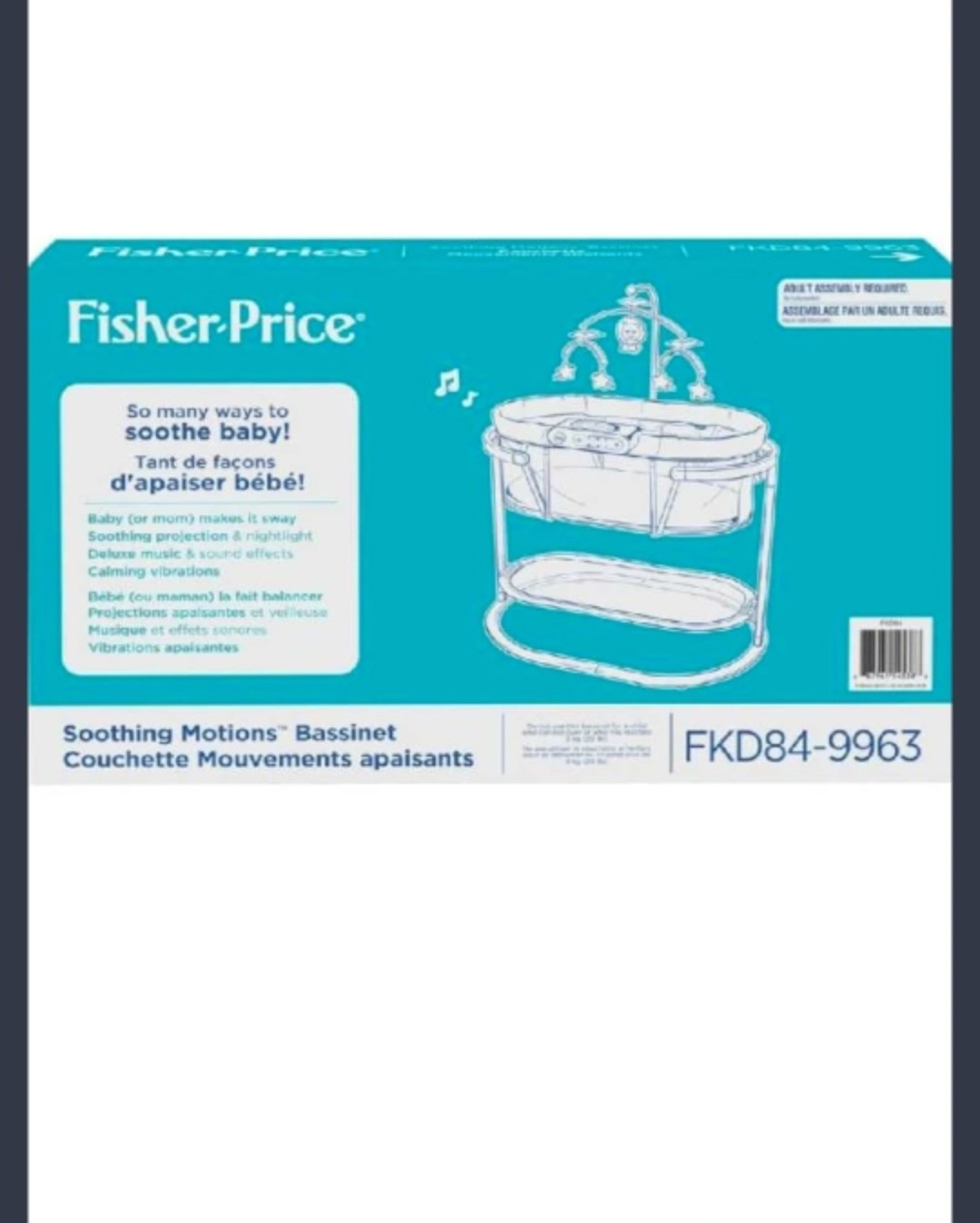 Selling a Fisher-Price Soothing Motions Bassinet in excellent condition! It's designed to soothe baby with gentle swaying motions and calming vibrations. The bassinet also features a light projection and music to help baby drift off to sleep. Perfect for newborns!