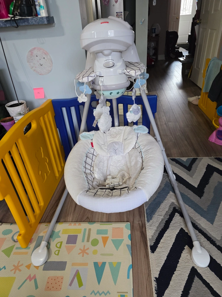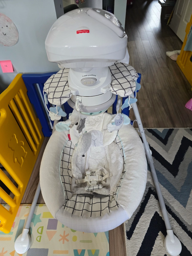 The Fisher-Price Sweet Snugalamb Dreams Cradle 'n Swing is perfect for soothing your little one! It features two swinging motions (side-to-side or head-to-toe) and six swing speeds to customize the experience. There are also 16 songs, nature sounds, and white noise options to help calm and entertain your baby. The plush seat pad and head support keep your baby comfy, and the mobile with adorable animal friends encourages visual tracking. Recommended age range is for newborns and up