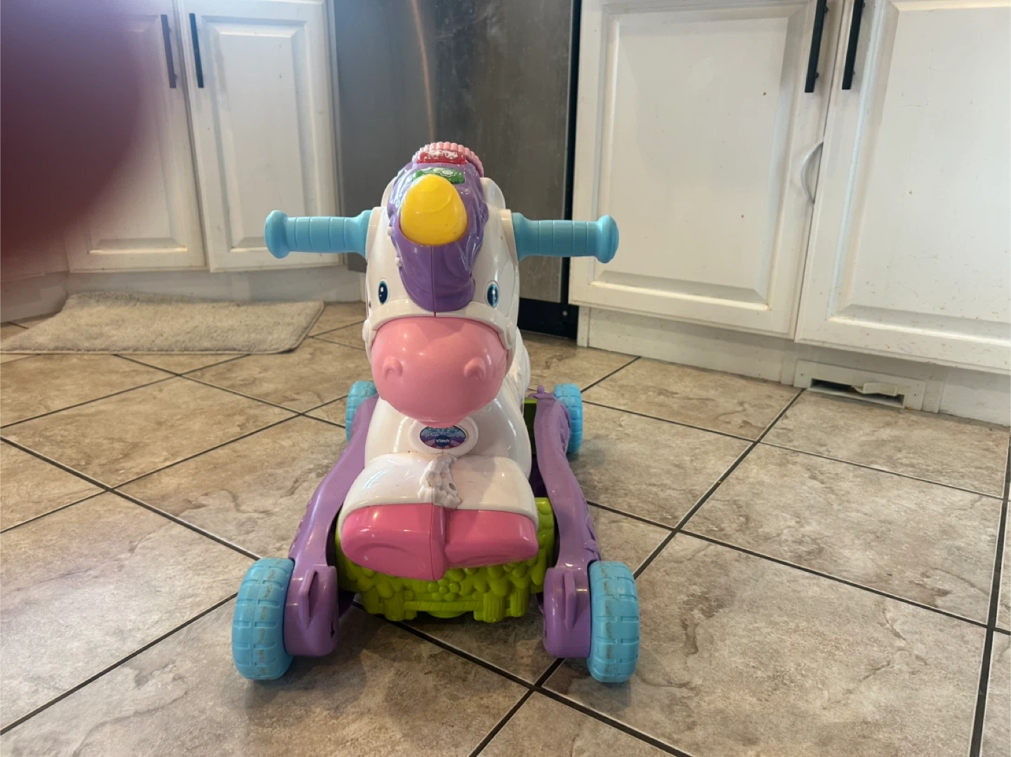 Selling a cute Fisher-Price Unicorn Ride-On toy! It's in great condition and ready for a new home. Perfect for toddlers who love unicorns and riding toys. This toy provides hours of fun and helps develop motor skills