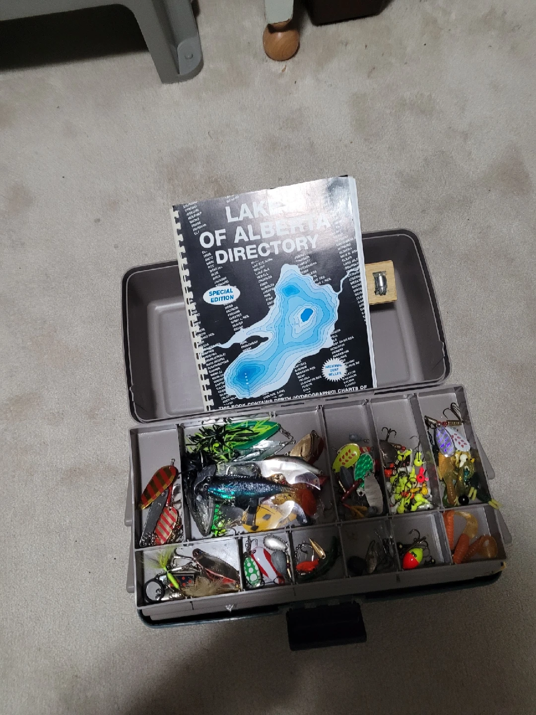 41Selling a fishing tackle box filled with various lures! Also included is a "Lakes of Alberta Directory" special edition book. Great for any fishing enthusiast!