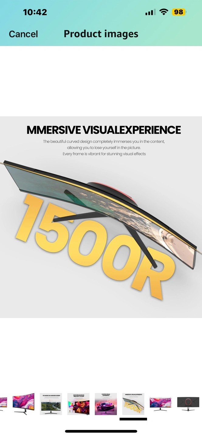 Selling a 30-inch ultrawide curved monitor! It has a 1500R curvature and a refresh rate of 100Hz. The dimensions are 70.3cm/27.67inch wide and 32cm/12.6inch high, making for an immersive visual experience