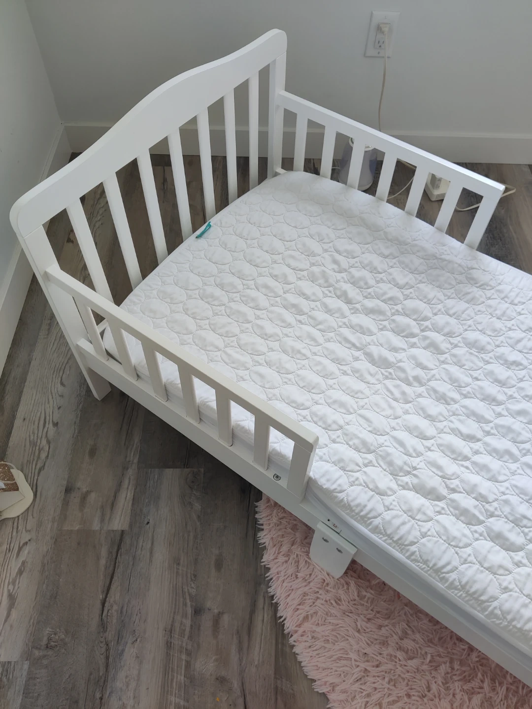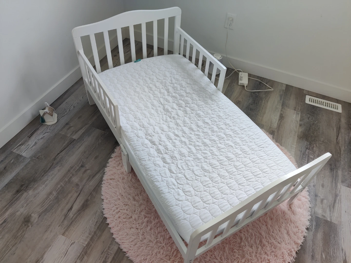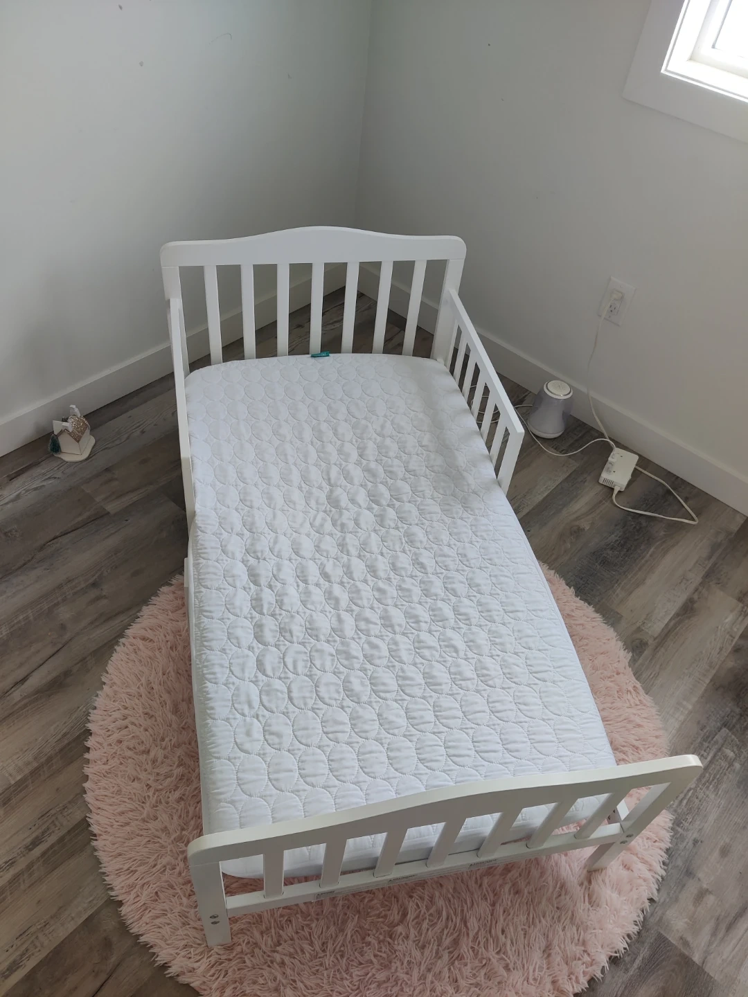White Toddler Bed with Mattress & Mattress protector