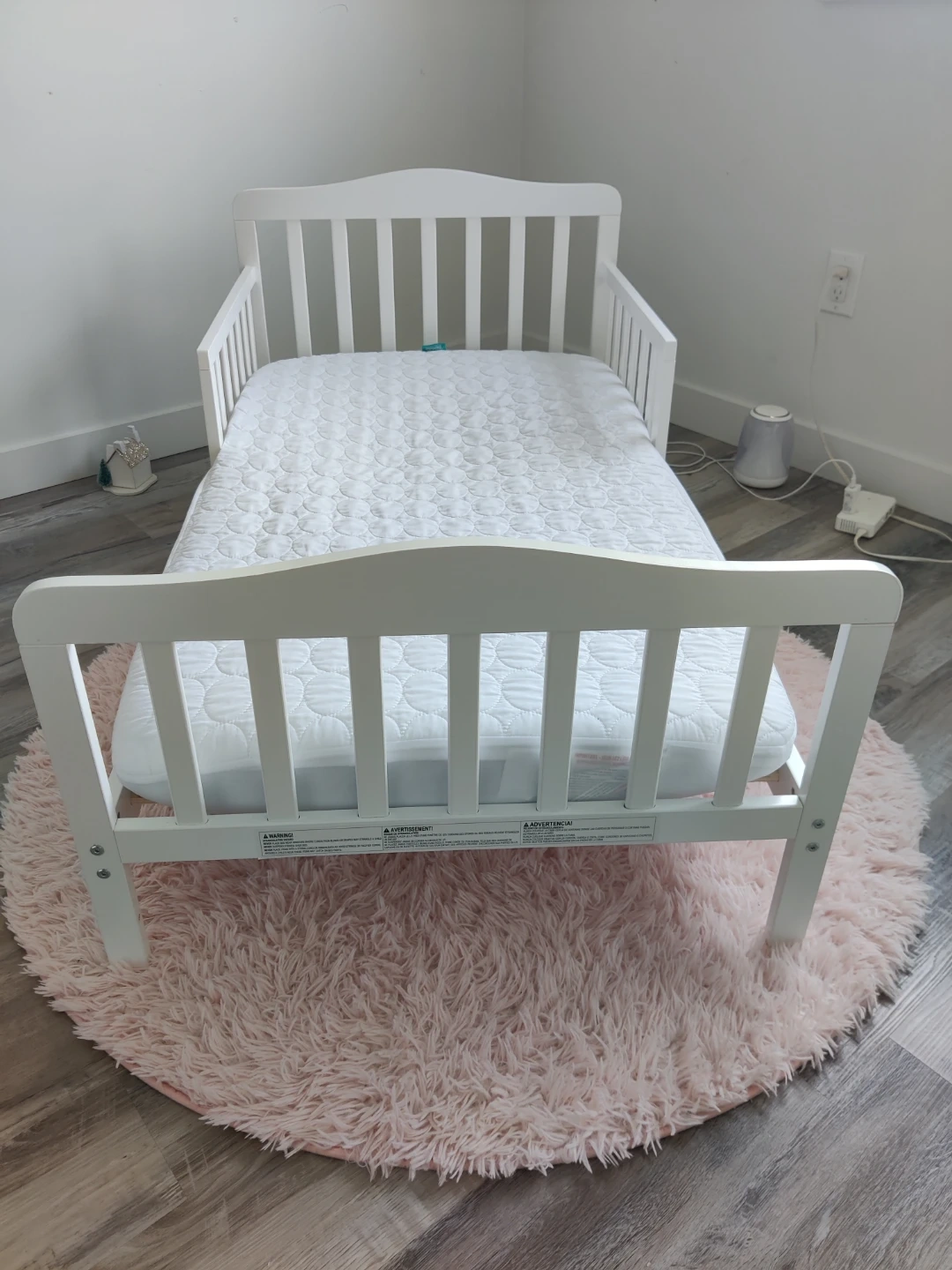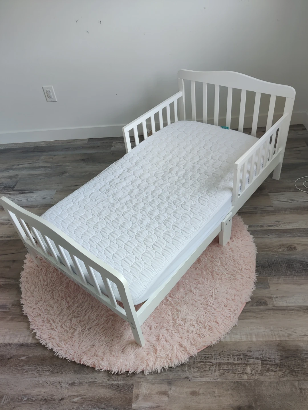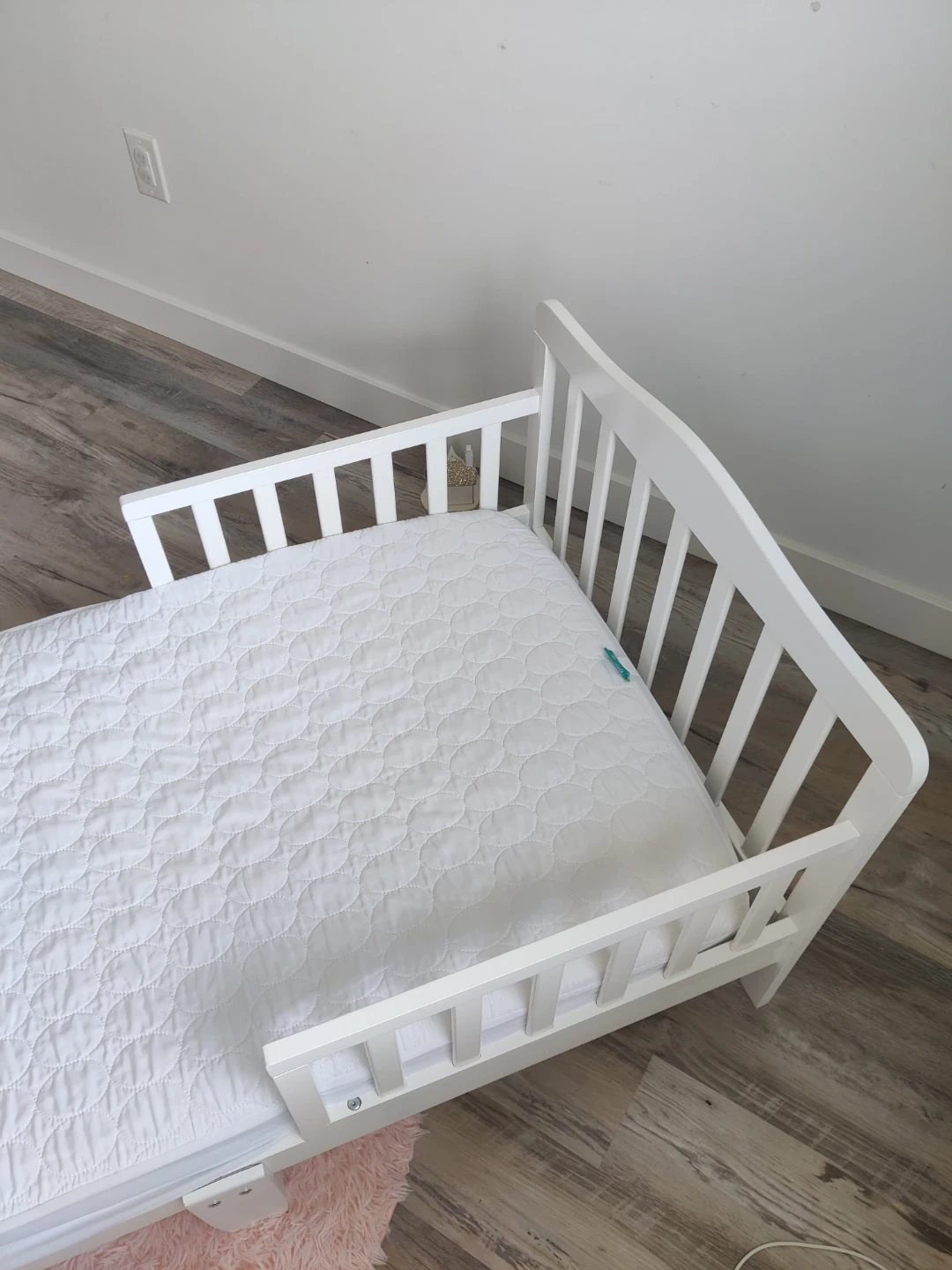 White Toddler Bed with Mattress & Mattress protector