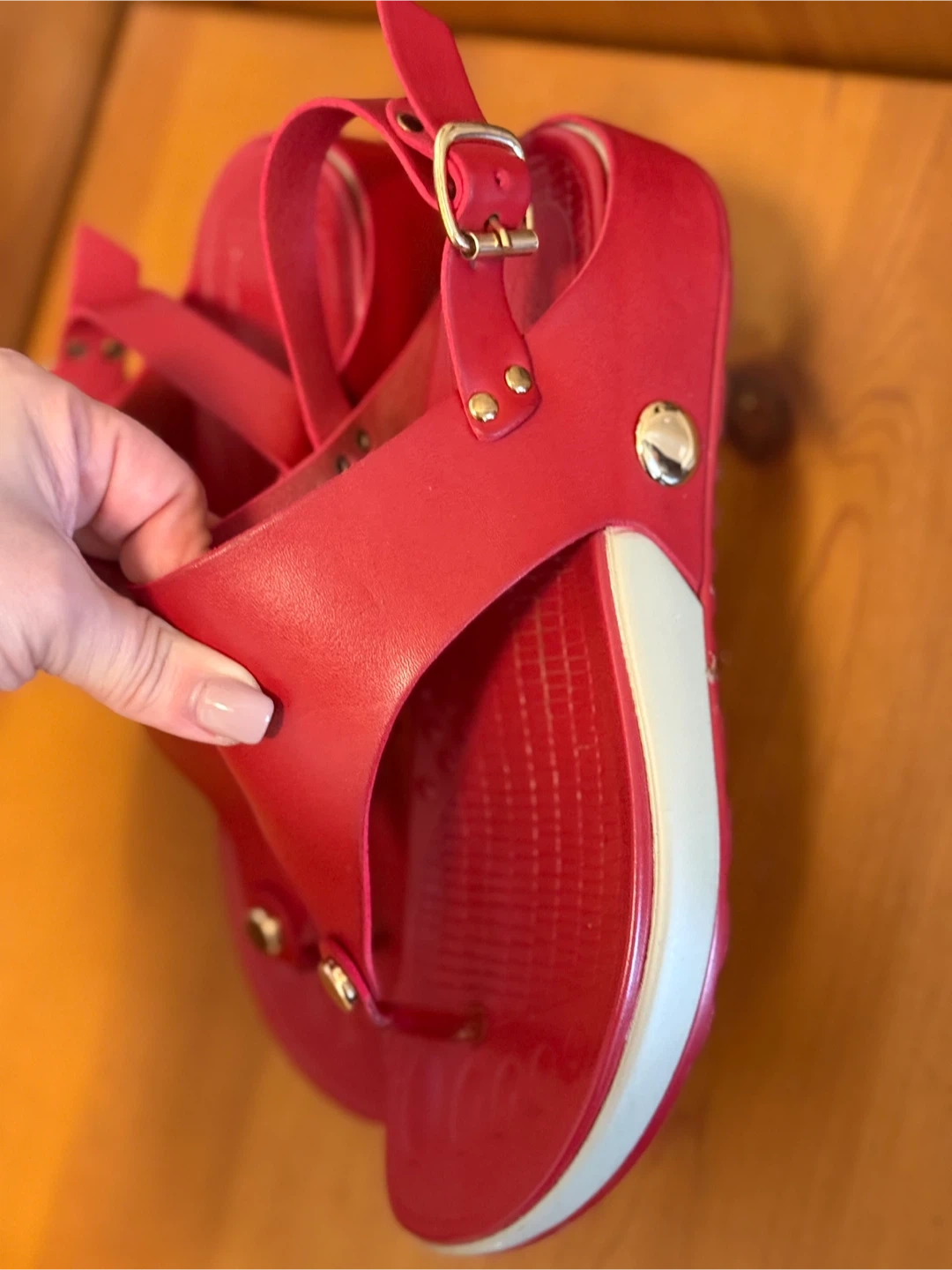 Buy & SellRed SandalsRed Sandals$15These are some red sandals! They are in great condition and ready for a new home Very light and comfortableConditionLike newSize6.5BrandUnknown WHERE TO MEETCheck LocationView MapSELLERverifiedNanaRichmond Hill E1115 reviews0 chats·1 favorites·15 viewsSEND CHAT TO SELLERHi Nana! I’m interested in your listing.Hi Nana! I’m interested in your listing.Get the Karrot app to chatSign In to chat