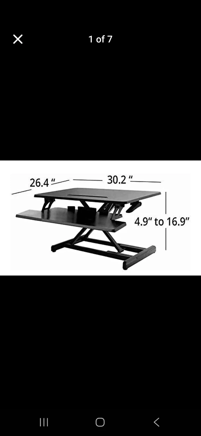Buy & SellAdjustable Standing Desk ConverterAdjustable Standing Desk Converter$32Adjustable standing desk converter for your workspace. Tabletop is 30.2" wide and 26.4" deep. Height adjusts from 4.9" to 16.9".ConditionLike newWHERE TO MEETmadore AvenueView MapSELLERverifiedFaithAustin Heights600 reviews0 chats·0 favorites·16 viewsSEND CHAT TO SELLERHi Faith! I’m interested in your listing.Hi Faith! I’m interested in your listing.Get the Karrot app to chatSign In to chat