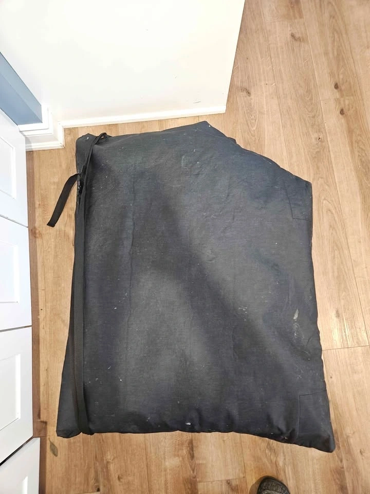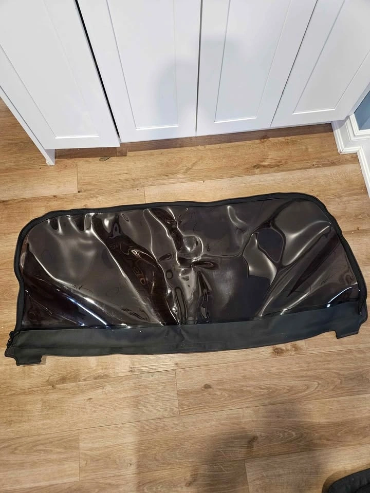 Condition: Good used condition overall. Cloth is very clean and well kept. Windows are intact with normal light wear from use and storage. Some minor surface rust on hardware and dust from storage unit (cosmetic only, not structural). Recently cleaned.