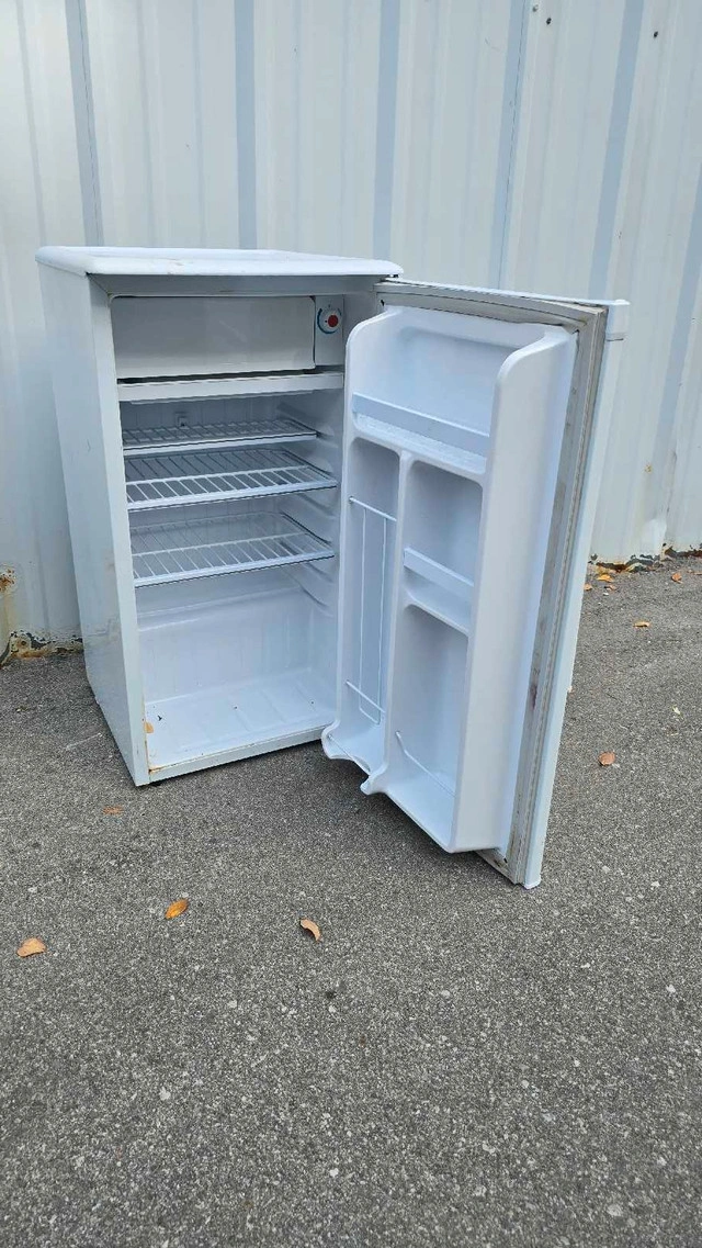This used mini fridge is perfect for small spaces, dorm rooms, or offices. It features adjustable temperature control and a compact design. It has some cosmetic wear but functions well. 32"×18"×18" 20"×17"×18.5" I have priced it competitively based on similar listings on Kijiji. If the ad is up, it's still available!