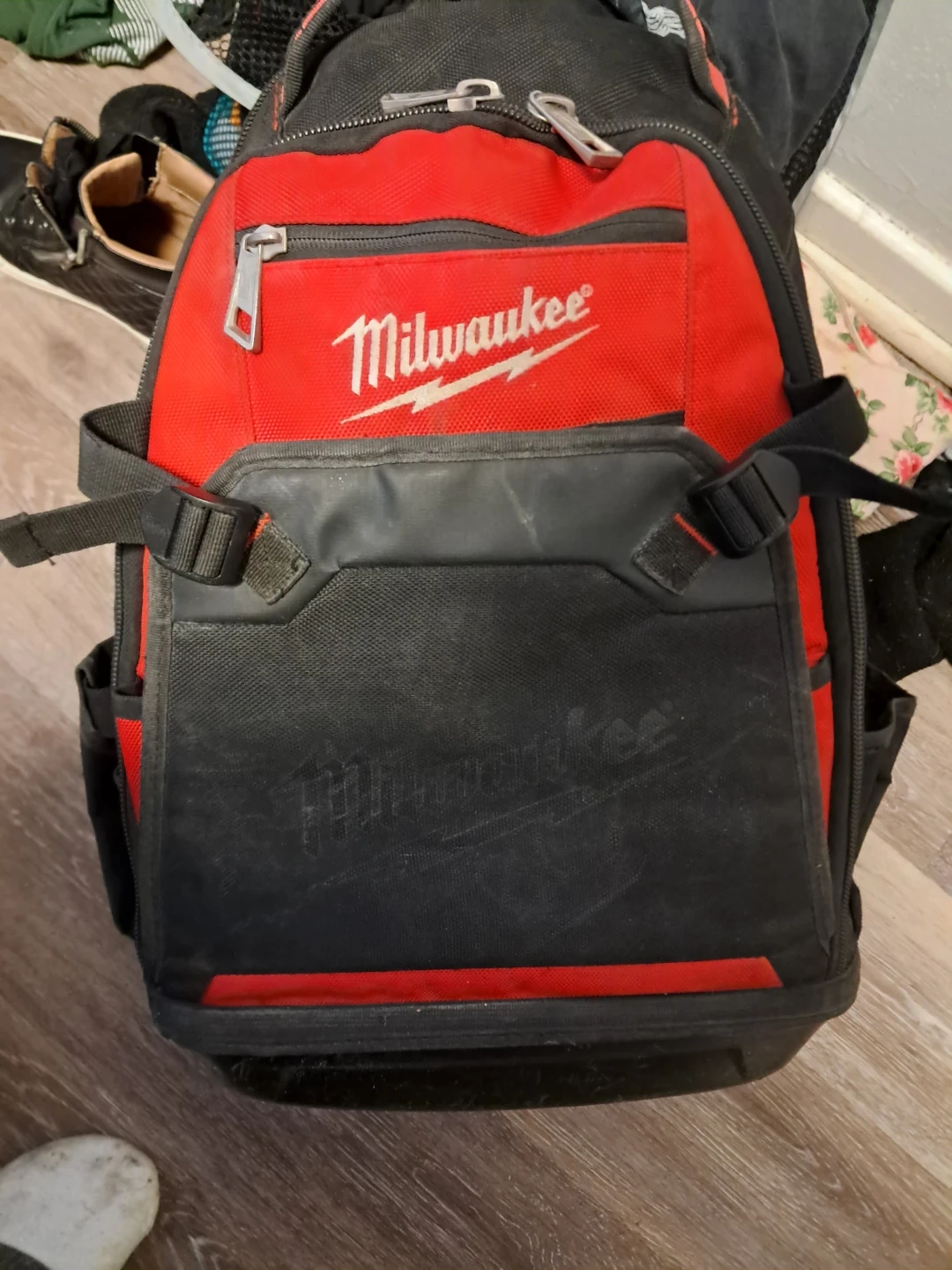 Selling a Milwaukee tool backpack in red and black! It's in good condition and ready to help you carry your tools to any job site. This durable backpack has lots of pockets and compartments to keep everything organized. Originally bought for $211.28