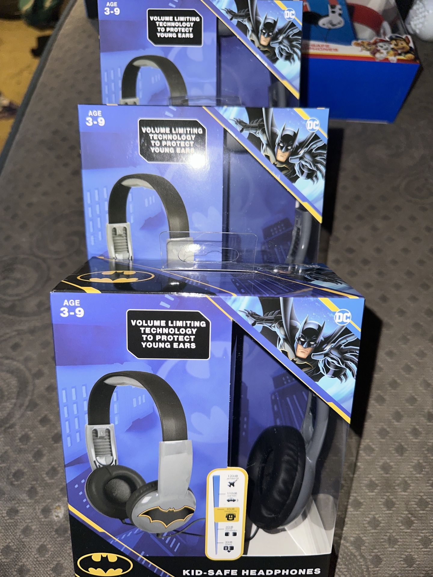 3 New Batman Kid-Safe Headphones Age 3-9