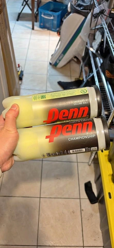 New Penn Championship tennis balls. This listing includes two pressurized cans. Each can contains three yellow tennis balls. These are standard extra-duty felt balls suitable for all court surfaces.