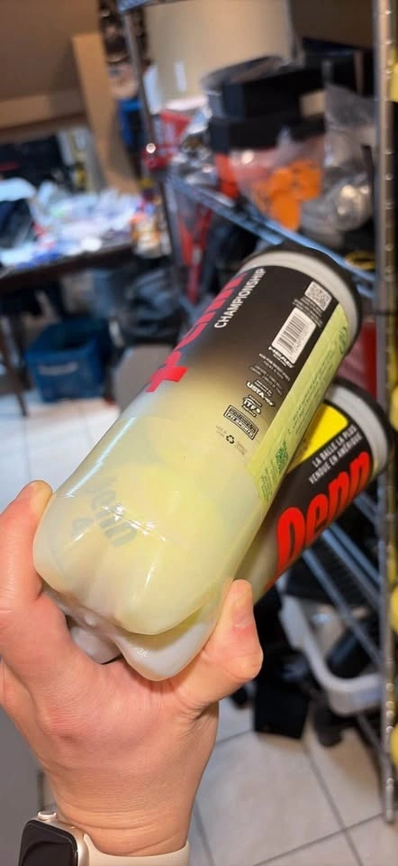 New Penn Championship tennis balls. This listing includes two pressurized cans. Each can contains three yellow tennis balls. These are standard extra-duty felt balls suitable for all court surfaces.