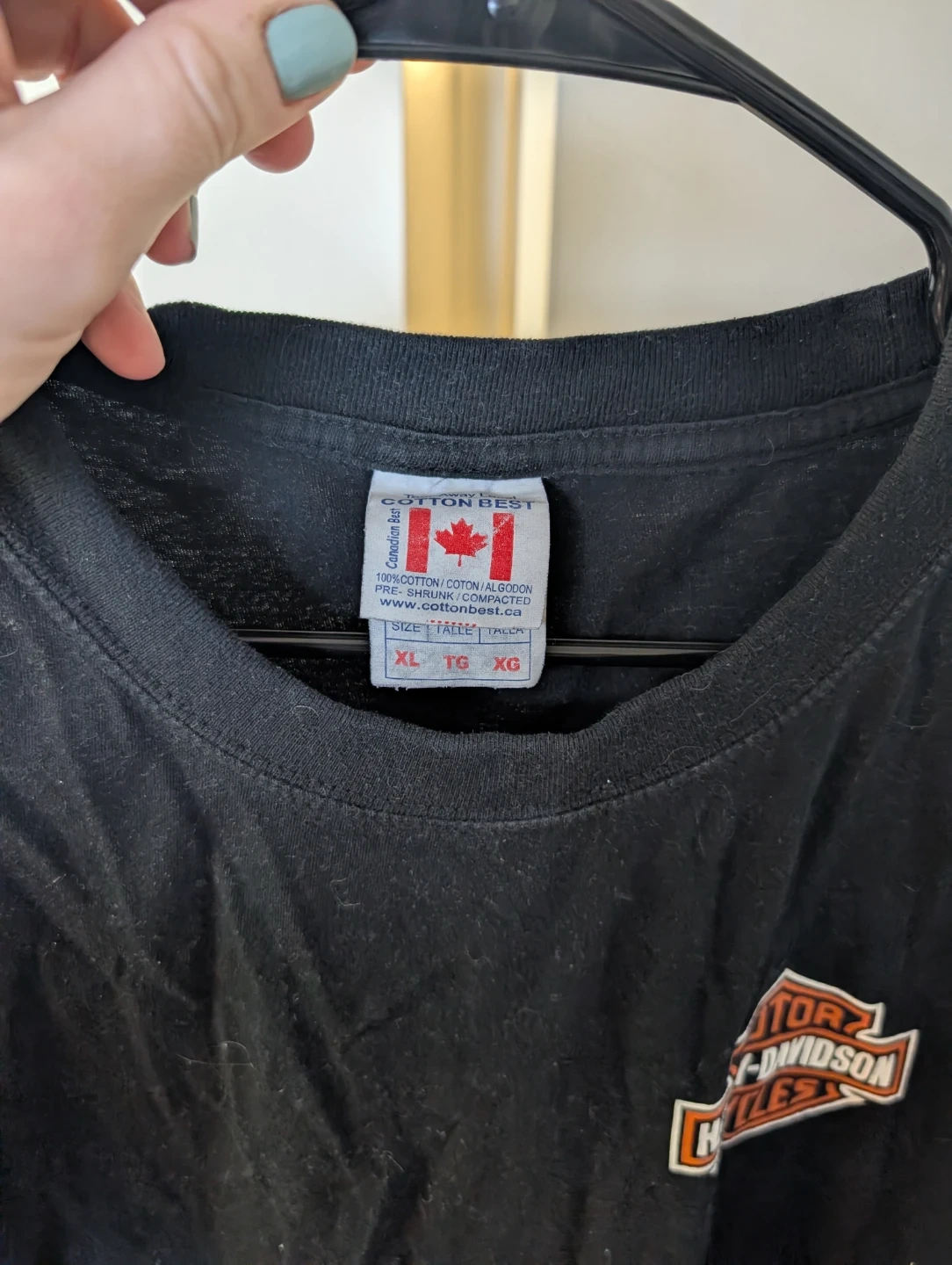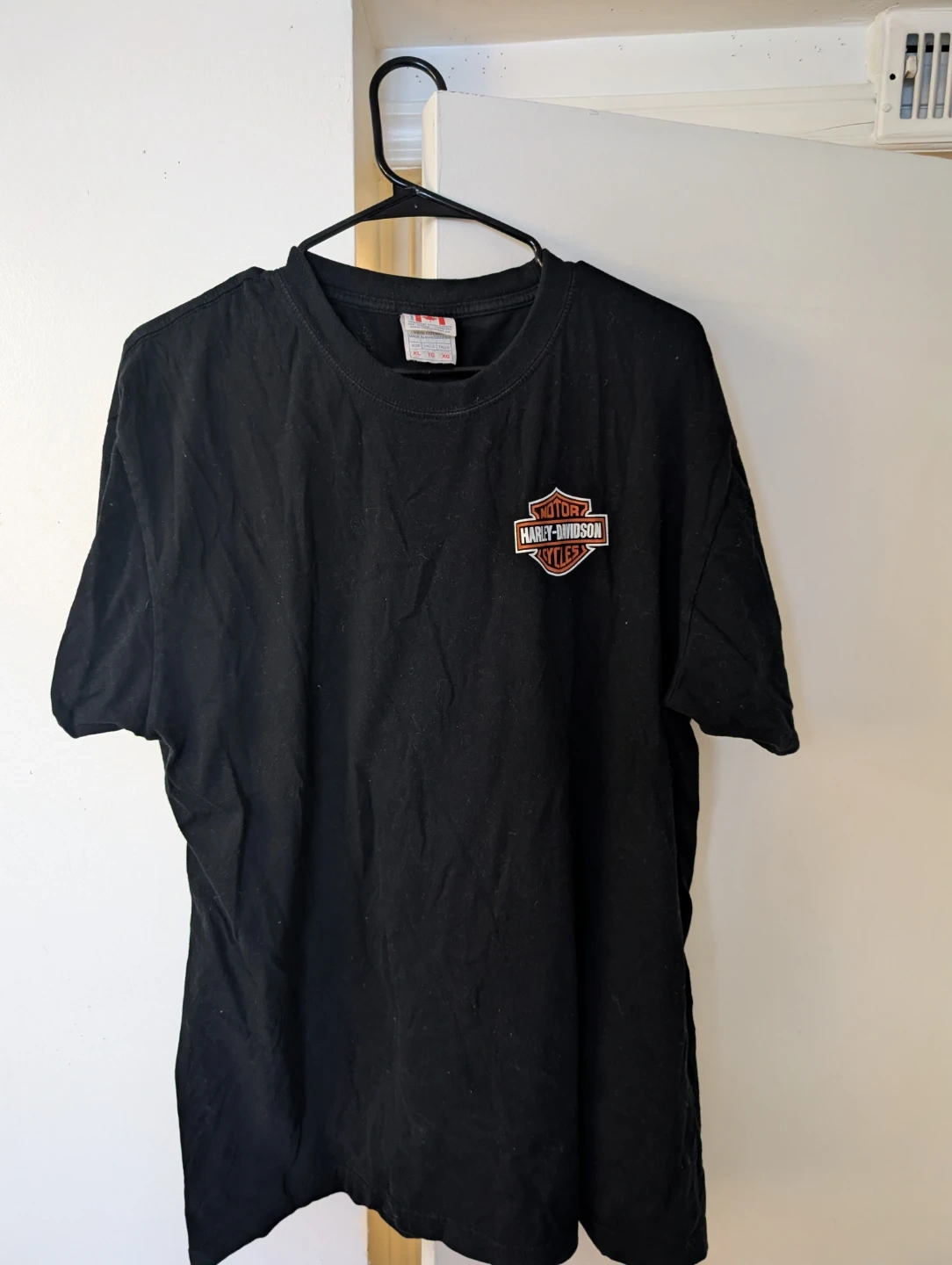 Buy & SellHarley-Davidson Black T-Shirt XLHarley-Davidson Black T-Shirt XL$10This is a black Harley-Davidson t-shirt. It's made of 100% cotton. Small logo on front and large back decal Great condition ConditionGoodSizeXLBrandHarley-DavidsonWHERE TO MEETChristie Pits ParkView MapSELLERverifiedLarissaOssington1377 reviews0 chats·1 favorites·9 viewsSEND CHAT TO SELLERHi Larissa! I’m interested in your listing.Hi Larissa! I’m interested in your listing.Get the Karrot app to chatSign In to chat