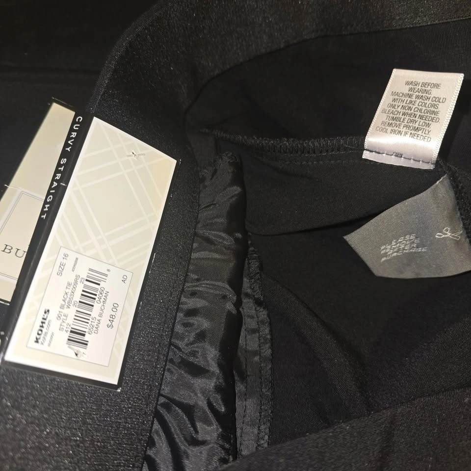 Dana Buchman Curvy Straight Black Tie Dress Pants 16 NWT