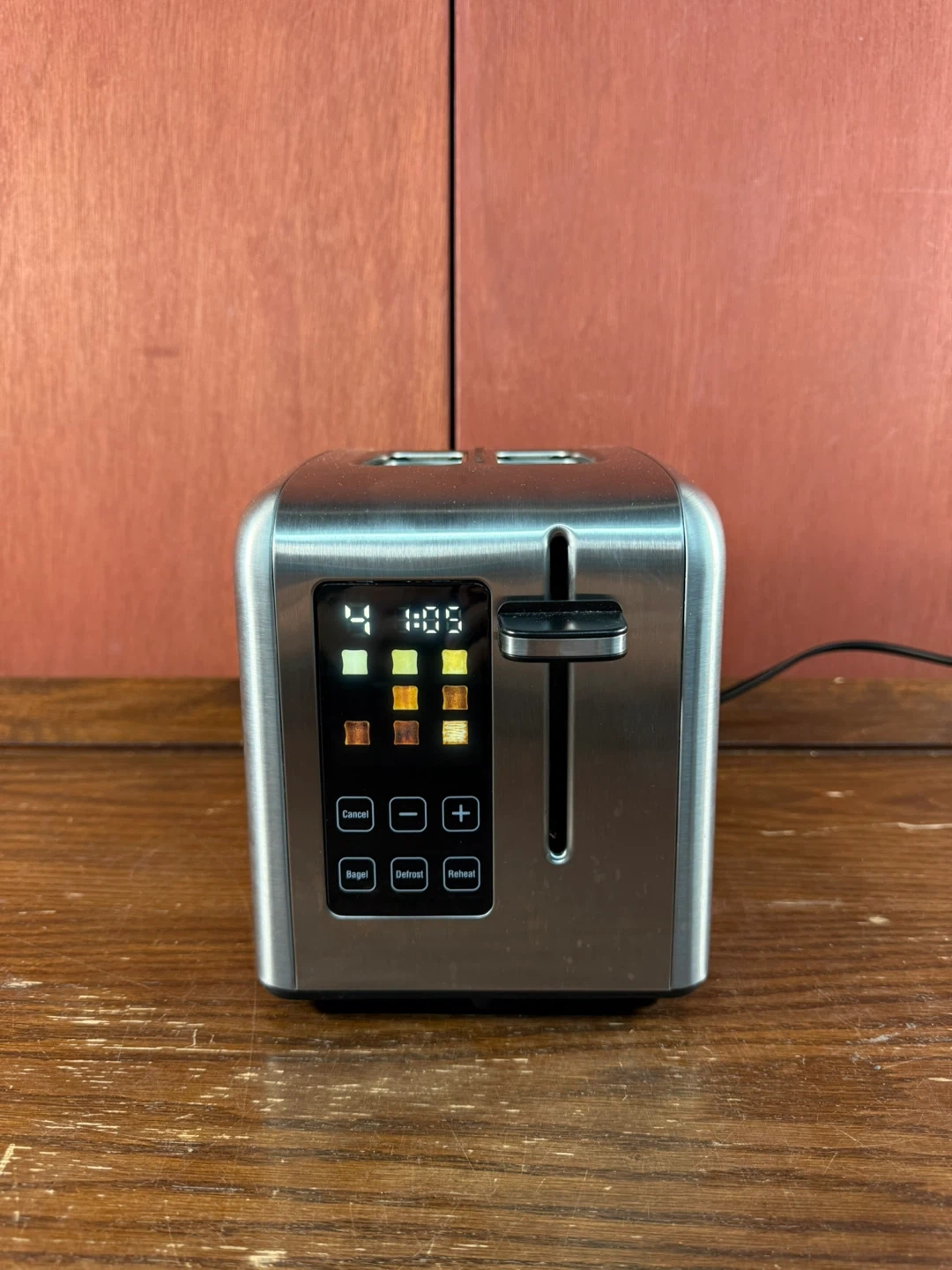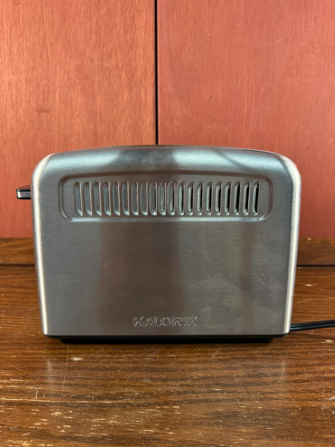 I'm selling a used Kalorik 2-Slice Stainless Steel Toaster, perfect for toasting your favourite breads and bagels with its sleek design and digital interface.