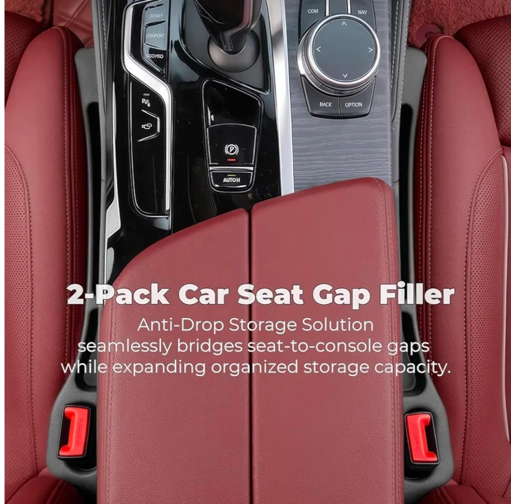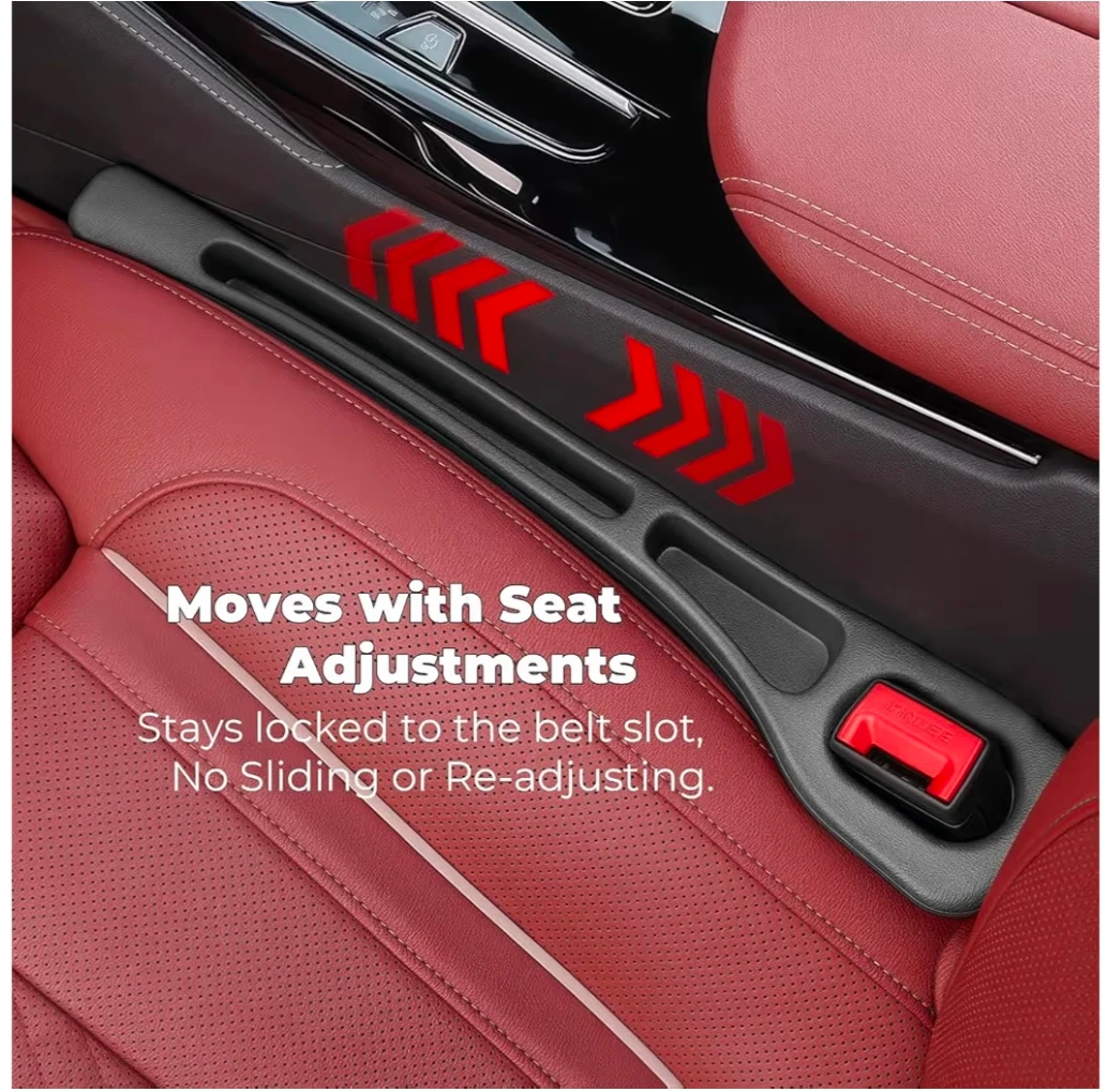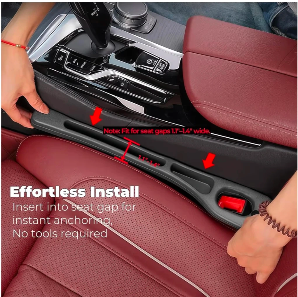 This car seat gap filler is an anti-drop storage solution. It bridges seat-to-console gaps, expanding organized storage capacity. Installation is effortless; just insert into the seat gap. Fits seat gaps 1.1"-1.4" wide. This is a 2-pack.
