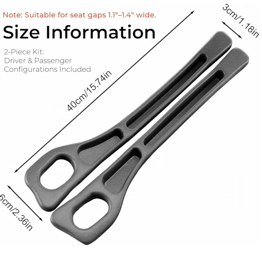 This car seat gap filler is an anti-drop storage solution. It bridges seat-to-console gaps, expanding organized storage capacity. Installation is effortless; just insert into the seat gap. Fits seat gaps 1.1"-1.4" wide. This is a 2-pack.