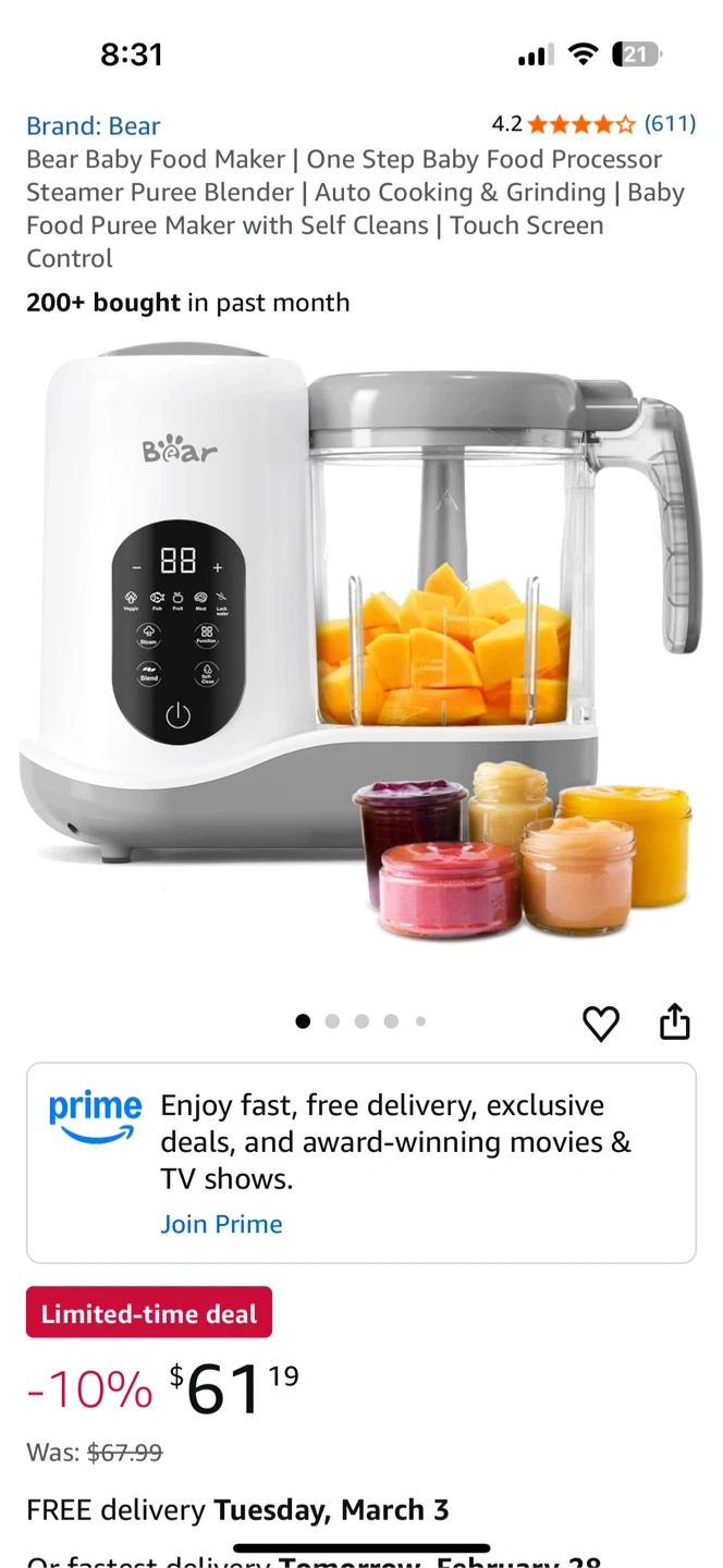 New This Bear Baby Food Maker is white and includes the original box and manual. It's designed to help you prepare healthy meals for your little one. The unit also comes with a 365-day warranty card.