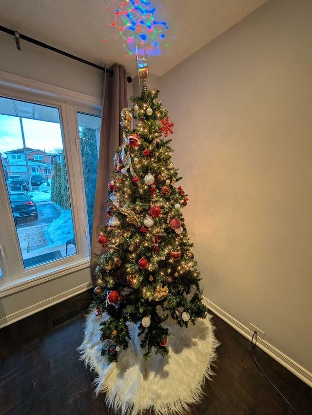 Add some sparkle to your holidays with this beautiful used Christmas tree, standing tall and ready to spread cheer. This tree has been the centerpiece of our holiday celebrations and is in very good condition, ready to bring joy to a new home. It features a sturdy base, easy setup, and a full, lush look with all ornaments included!