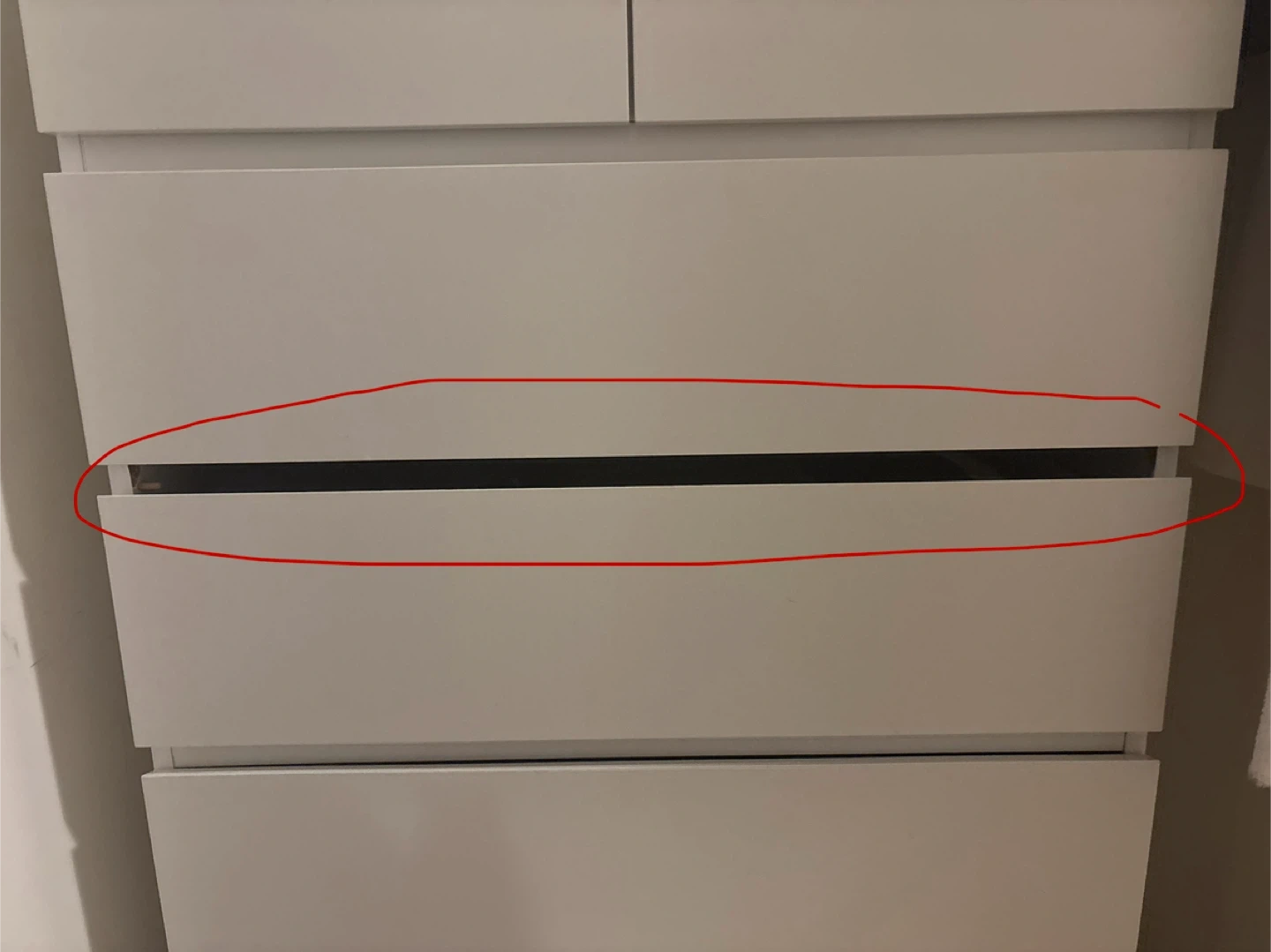 See pictures for small gap between dressers. All drawers are functional. Otherwise like new.