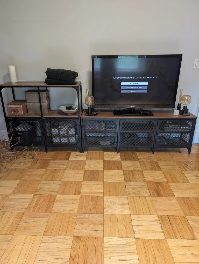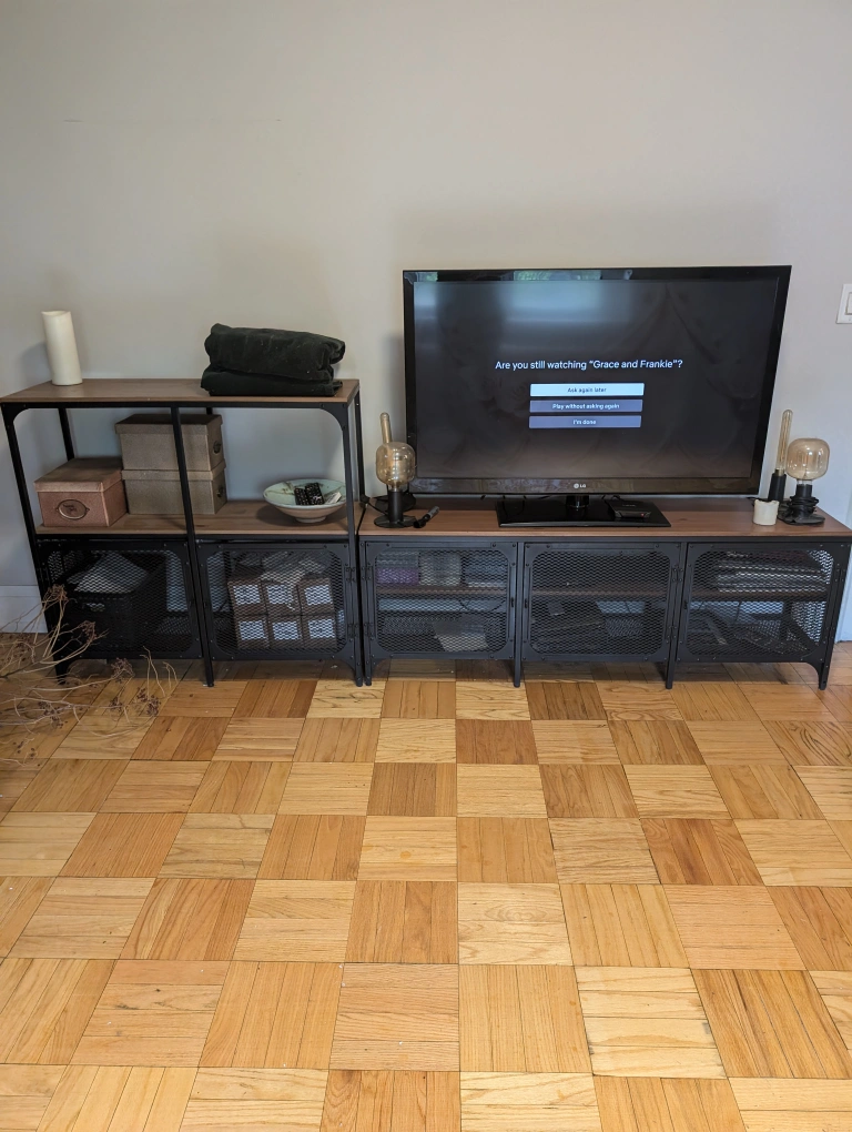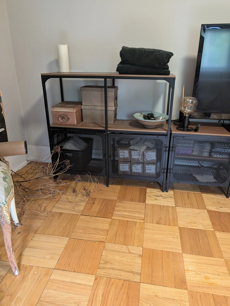IKEA FJALLBO TV bench and 3 tier shelf. take both for $250 or individually the TV bench $150 and Shelf $125.