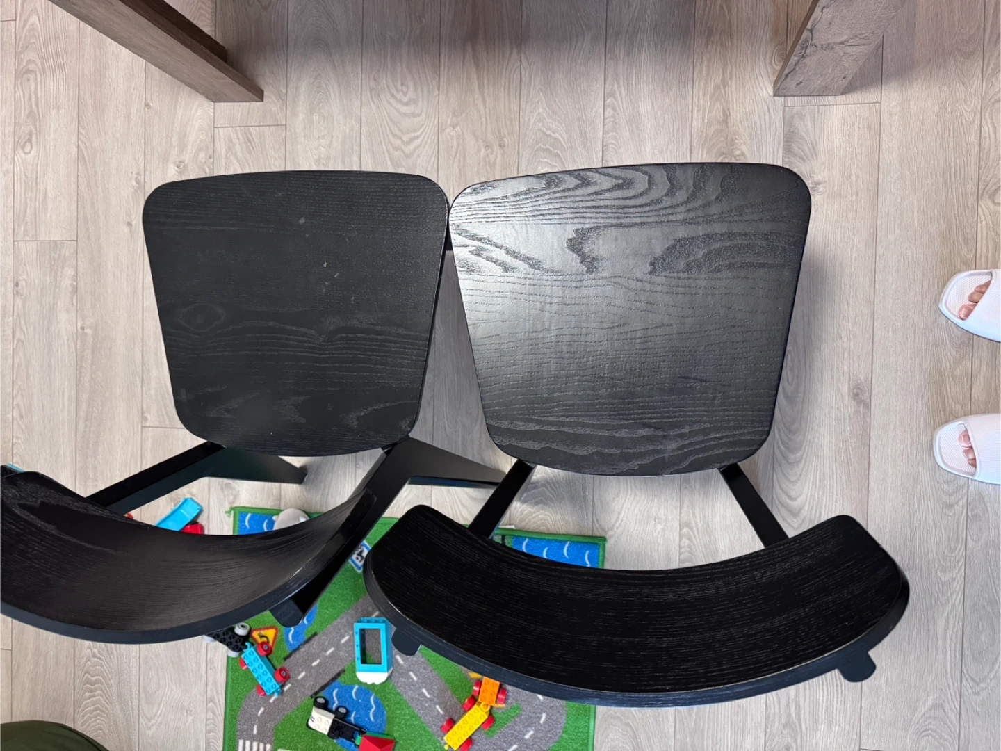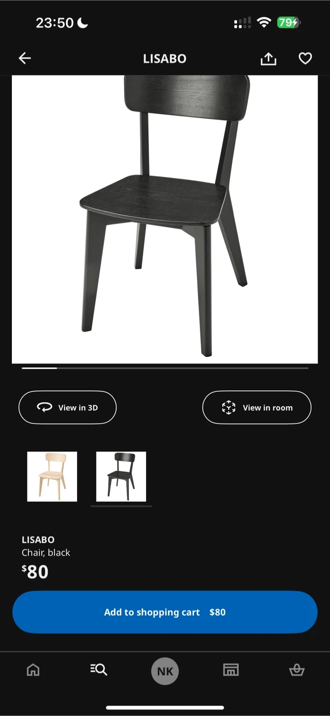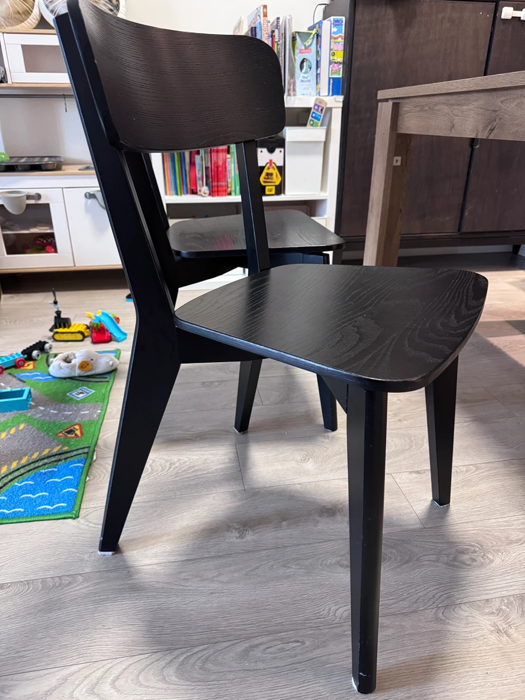 This is a pair of black IKEA LISABO chairs. They're made of ash veneer and plastic. Perfect for a dining set or as accent chairs in a room. Good condition!