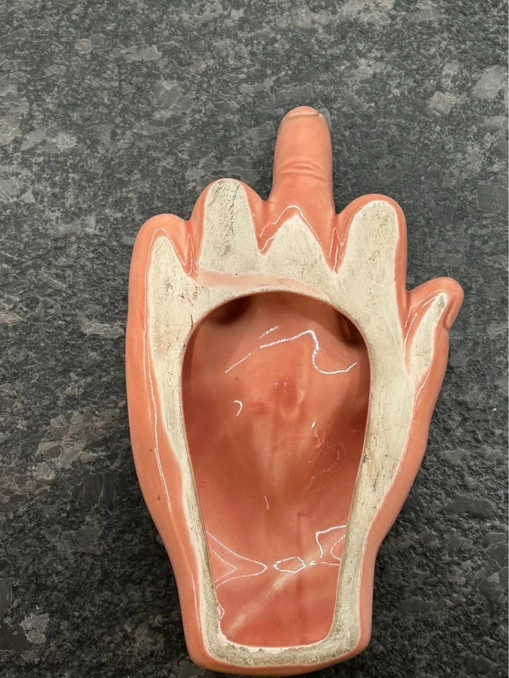 RARE 1960S GLAD HAND MIDDLE FINGER ASHTRAY
