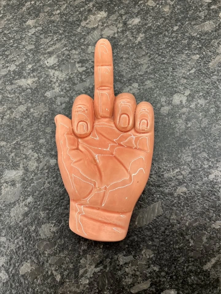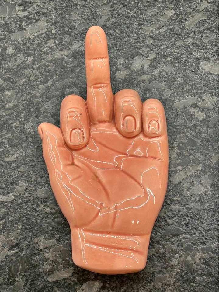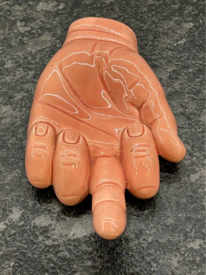 RARE 1960S GLAD HAND MIDDLE FINGER ASHTRAY
