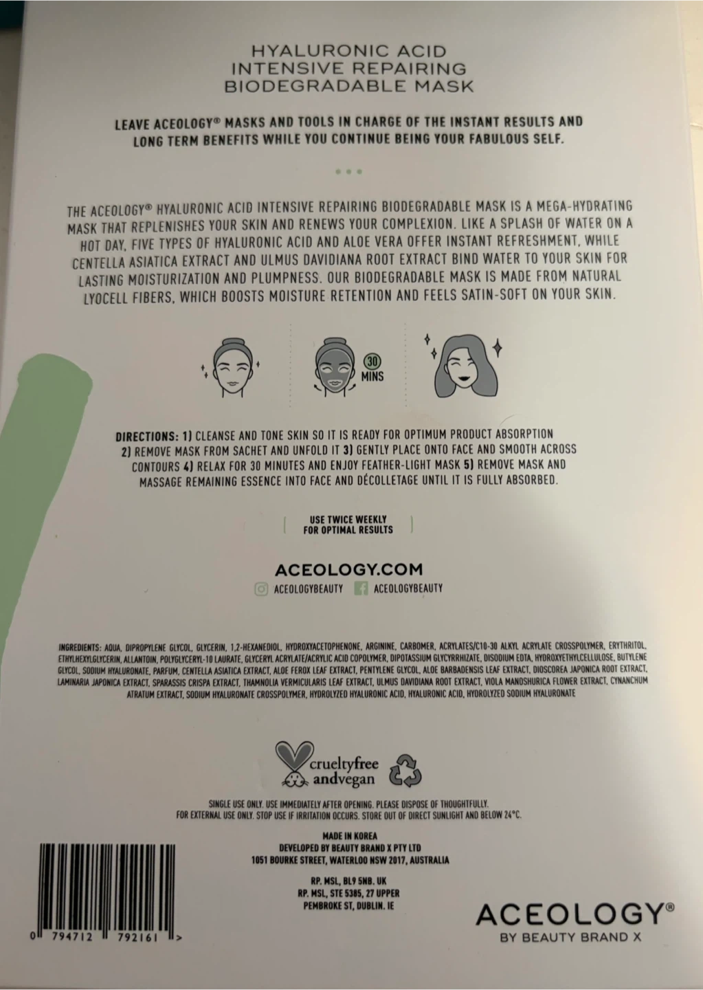 Aceology Hyaluronic Acid Repairing Biodegradable Mask