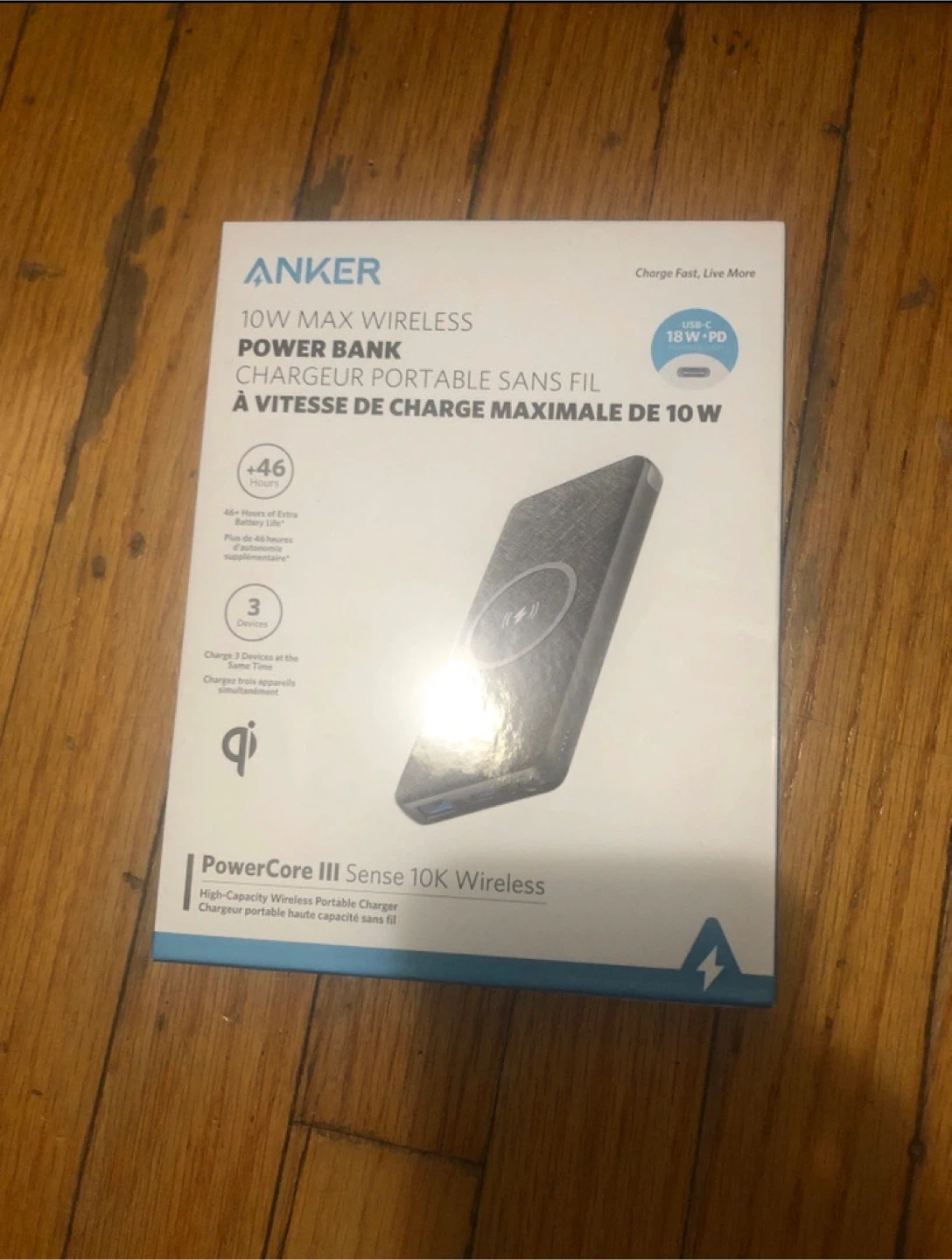 Anker PowerCore III Sense 10K Wireless Power Bank. It's a high-capacity wireless portable charger that supports 10W max wireless fast charging. It also features high-speed 18W charging for USB-C devices and can charge devices wirelessly while recharging the powercore. It comes with USB-C connectivity so you can charge your devices quickly and efficiently