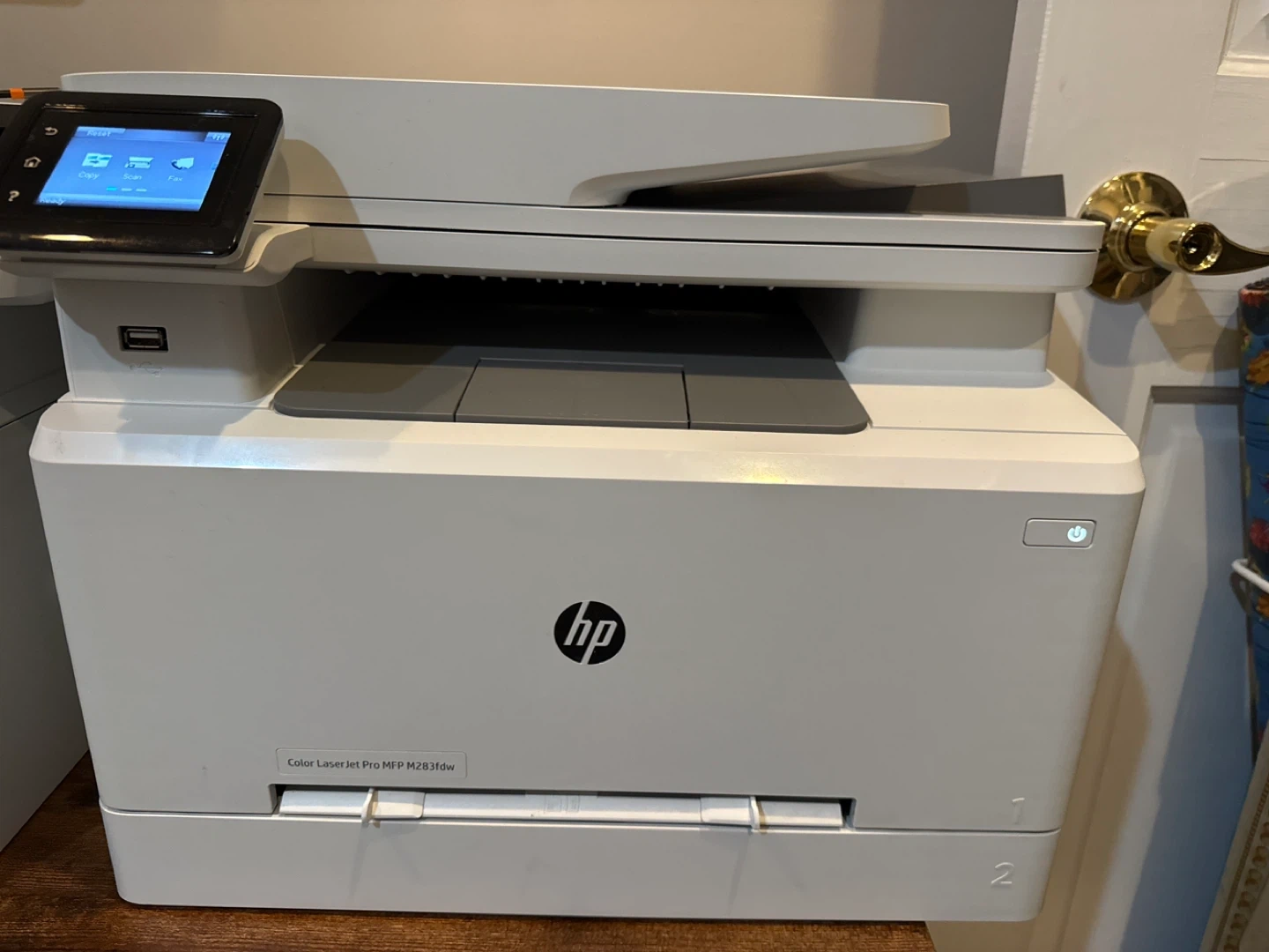 This HP Color LaserJet Pro MFP M283fdw is a versatile all-in-one printer. It's a laser printer with print, scan, copy, and fax capabilities. It's white and comes in a compact design for office use.
