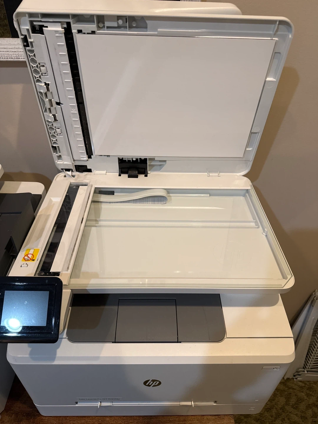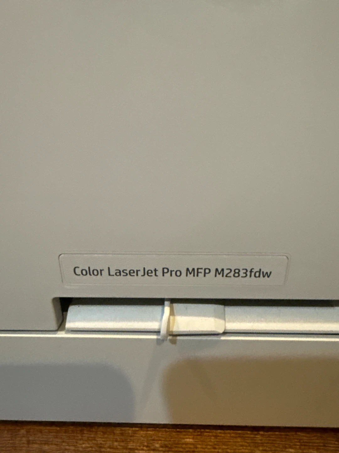 This HP Color LaserJet Pro MFP M283fdw is a versatile all-in-one printer. It's a laser printer with print, scan, copy, and fax capabilities. It's white and comes in a compact design for office use.