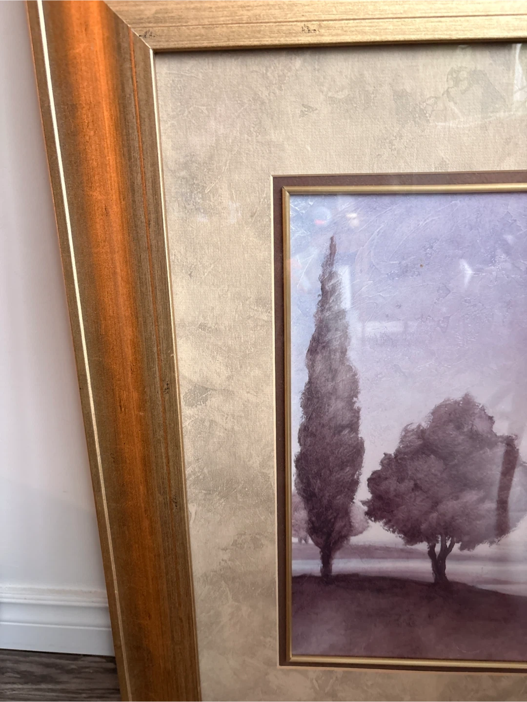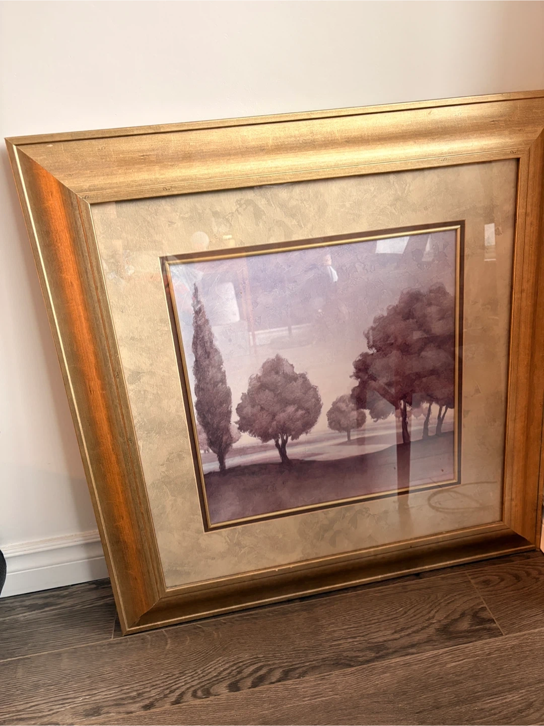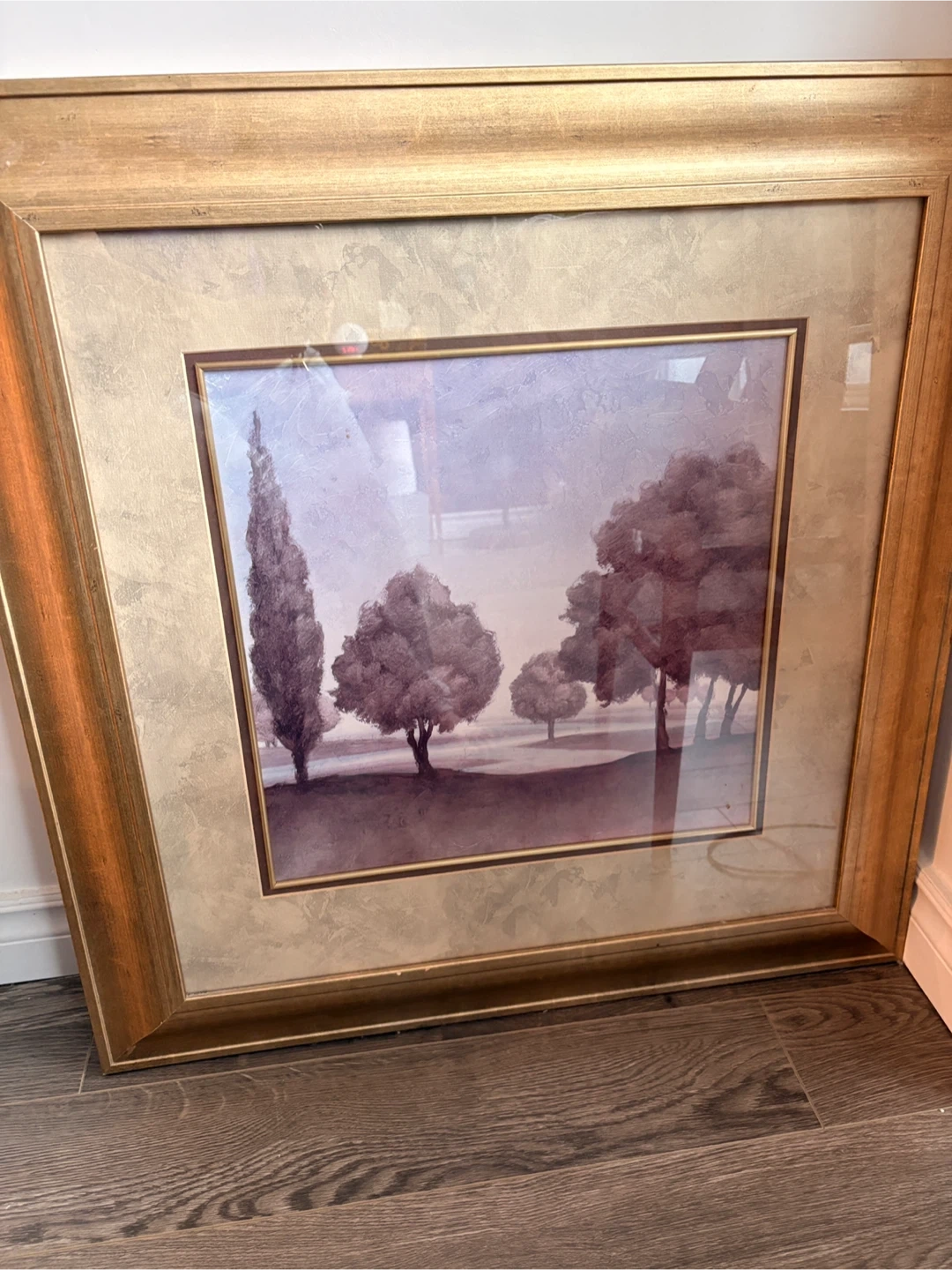 This is a framed landscape painting by Gerard Wall Art. It depicts trees in a serene setting. The frame is a classic gold colour. It's ready to add some charm to your home! dimension 29x29