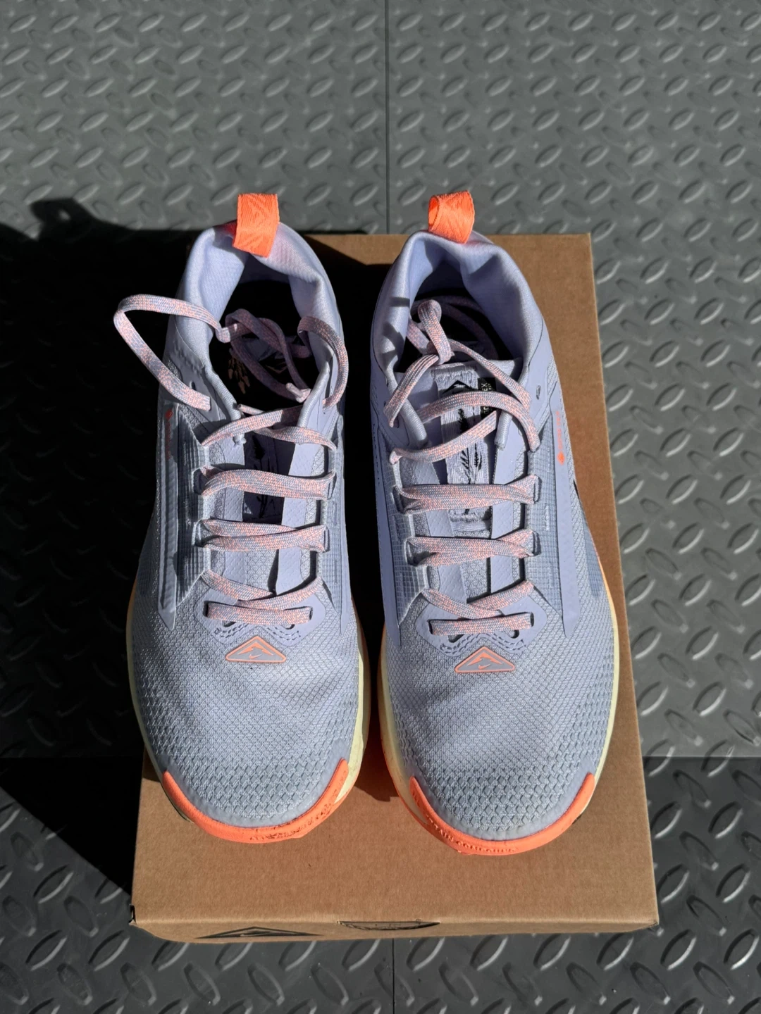 Nike Pegasus Trail GORE-TEX running shoes in a light grey and orange colourway. Size 7.5 US Women's. Includes original box.