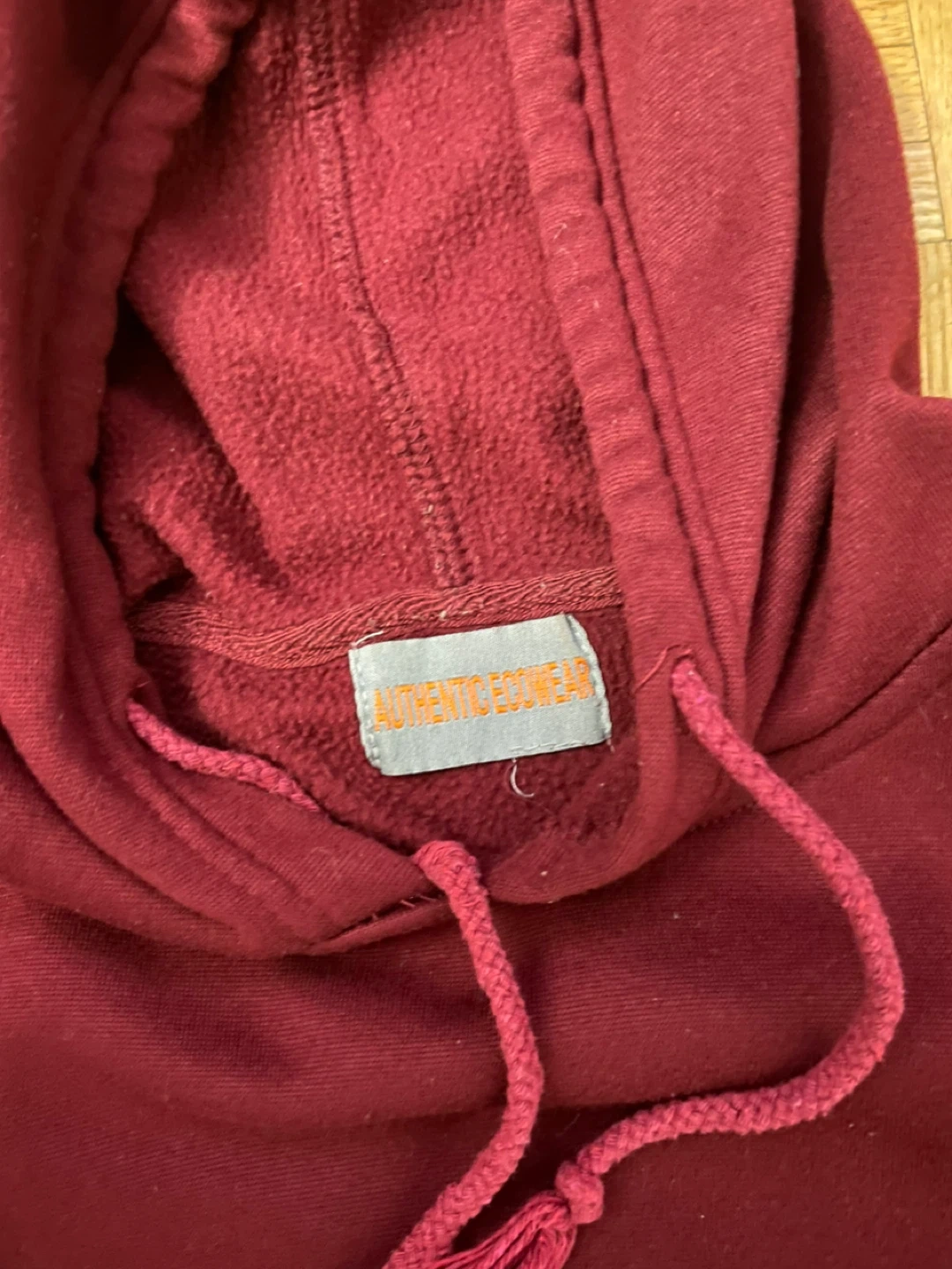 Selling a burgundy hoodie from Authentic Ecowear. It's in great shape and ready for a new owner! Perfect for staying cozy on cooler days