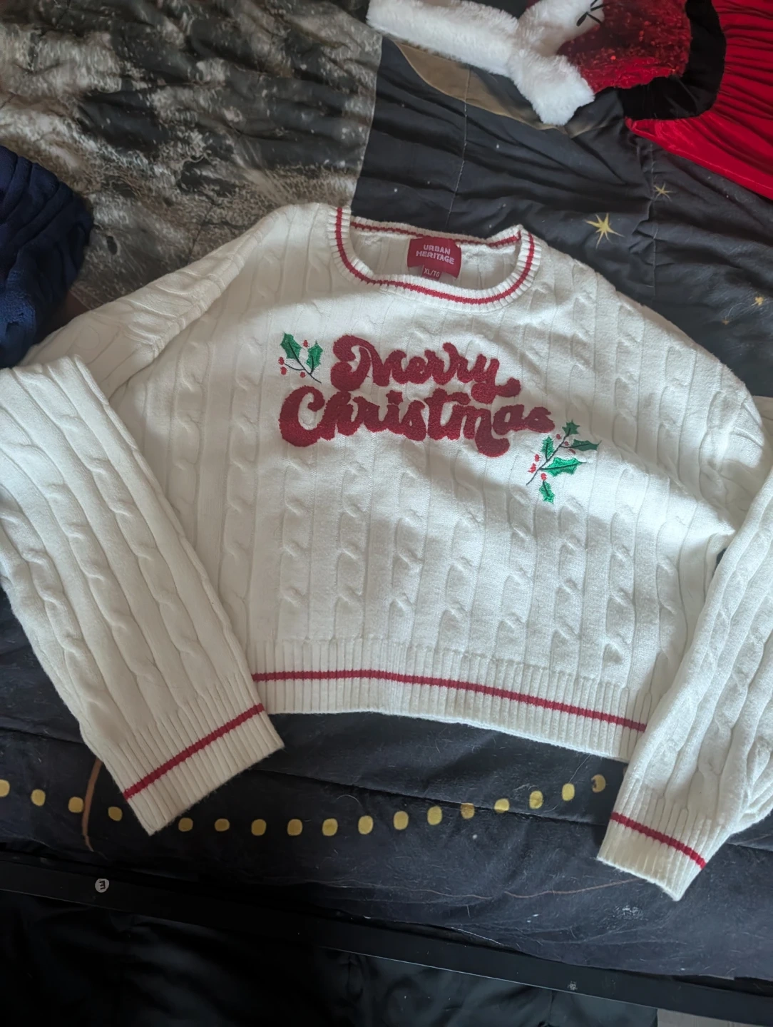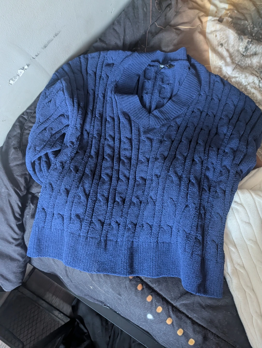 A bundle of women's clothing including a floral print off-the-shoulder top, a plaid collared shirt, a black sweater with a faux fur collar, a light blue button-up cardigan, and a blue and white striped hooded cardigan. Mix and match for various looks!