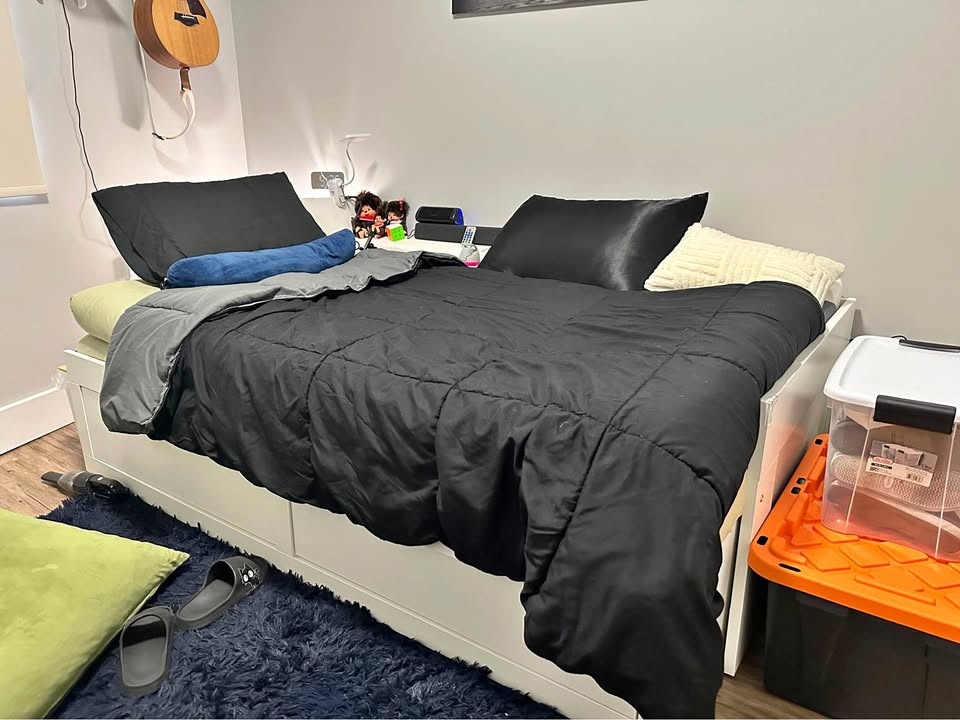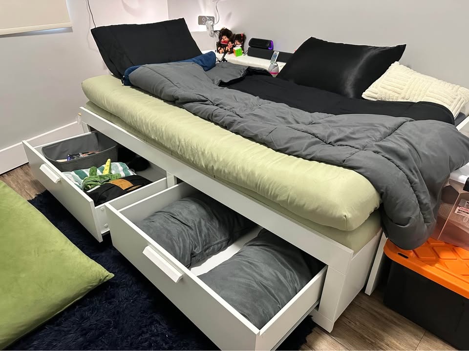 If you want the frame and mattresses, I can sell all together for $325. When open, it’s a king sized bed! Perfect for small spaces but want some comfort from time to time! :) my fav bed so far!