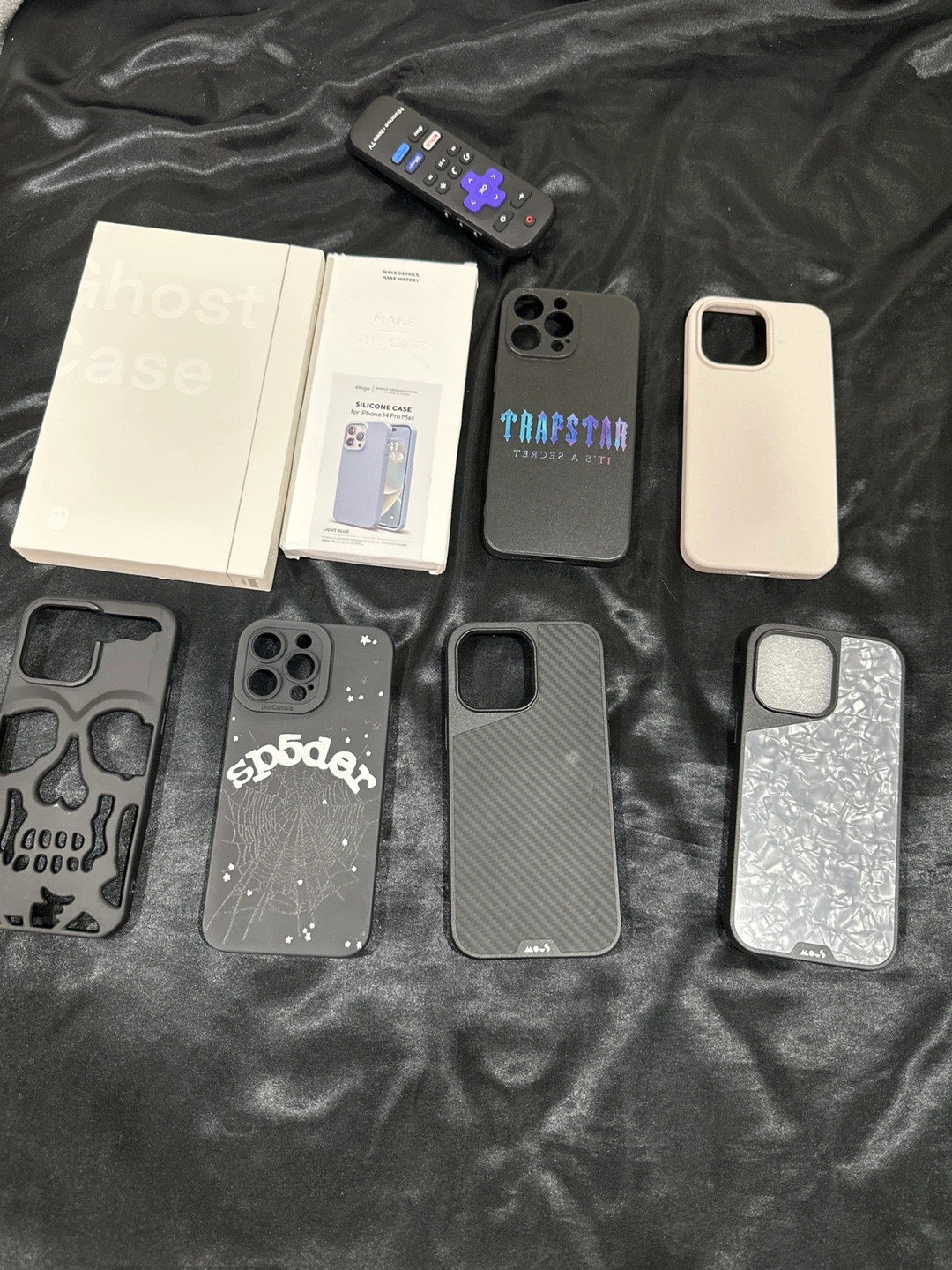Selling a variety of iPhone 14 Pro Max cases! There's a Ghost Case, a Trapstar case, and a Sp5der case, plus a few others with unique designs. All are in great shape and ready to protect your phone