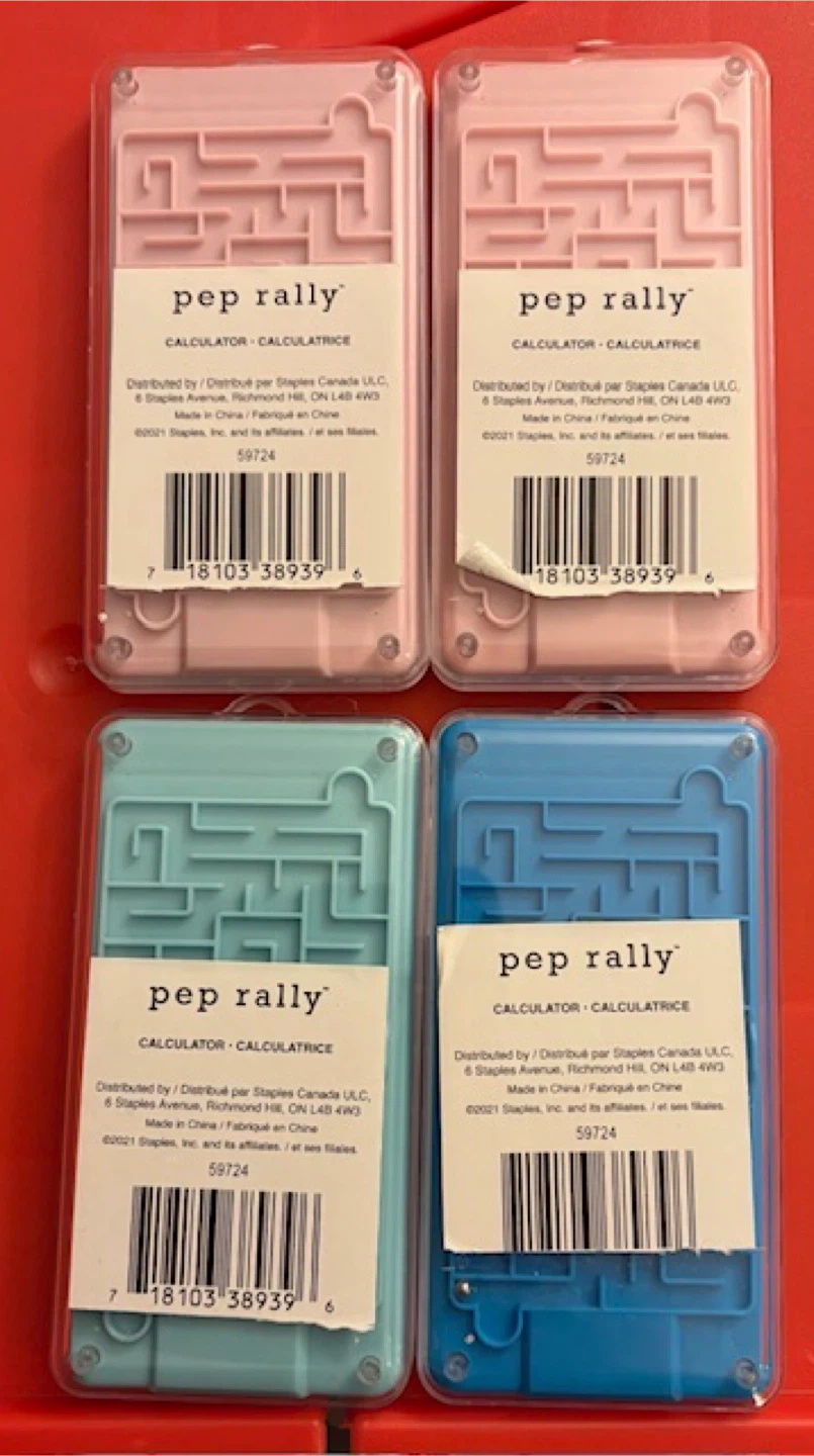 Selling four Pep Rally calculators! Two are pink, one is teal, and one is blue. They are in great condition and ready to help with all your calculations. Each have a game on the back side 🤩 $5 each