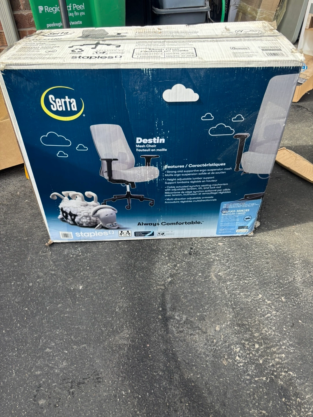 1 / 21 / 2Buy & SellSerta Destin Mesh Office ChairSerta Destin Mesh Office Chair$70Grey mesh office chair. Adjustable lumbar support. New in box. Staples brand.WHERE TO MEET22 Tanasi RoadView MapSELLERRohanCredit Valley292 reviews1 chats·0 favorites·22 viewsSEND CHAT TO SELLERHi Rohan! I’m interested in your listing.Hi Rohan! I’m interested in your listing.Get the Karrot app to chatSign In to chat