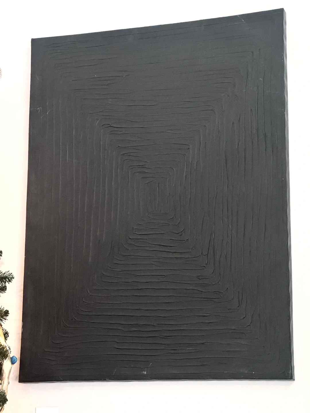 This is a piece of abstract wall art featuring a textured black square design. It adds a unique touch to any room!
