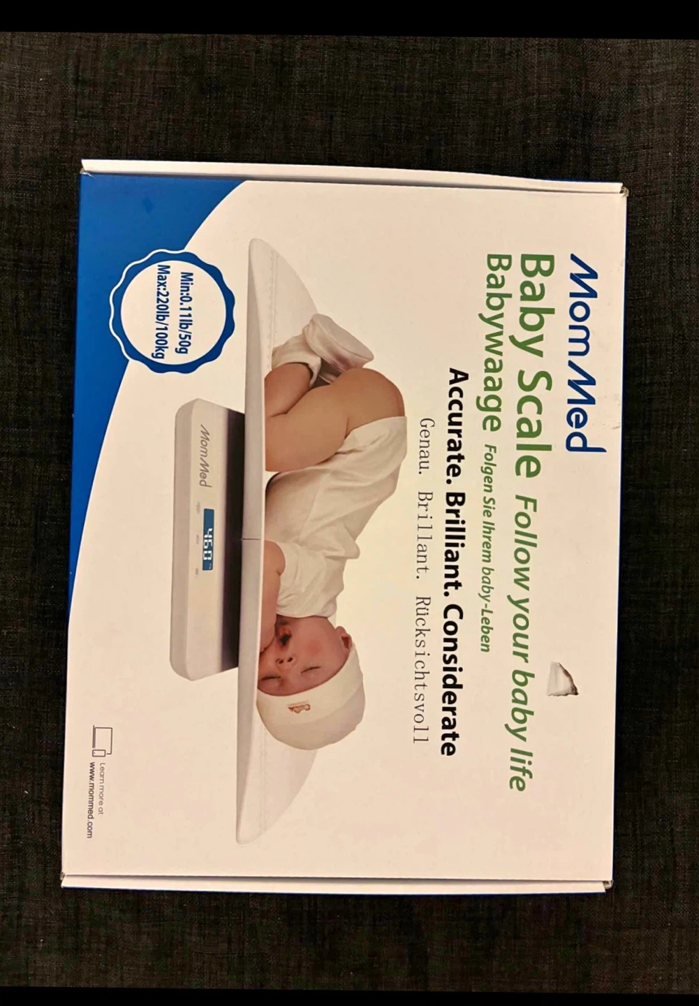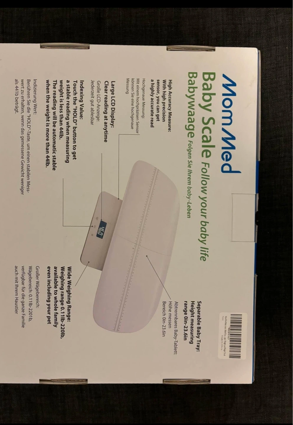 Mom Med Baby Scale for accurately following your baby's life. It features high precision sensors for accurate readings. The weighing range is 0.11 lb to 44 lb, suitable for infants and toddlers up to 20 kg. This scale also includes a separate baby tray with a height-measuring range of 0-23.6 inches.