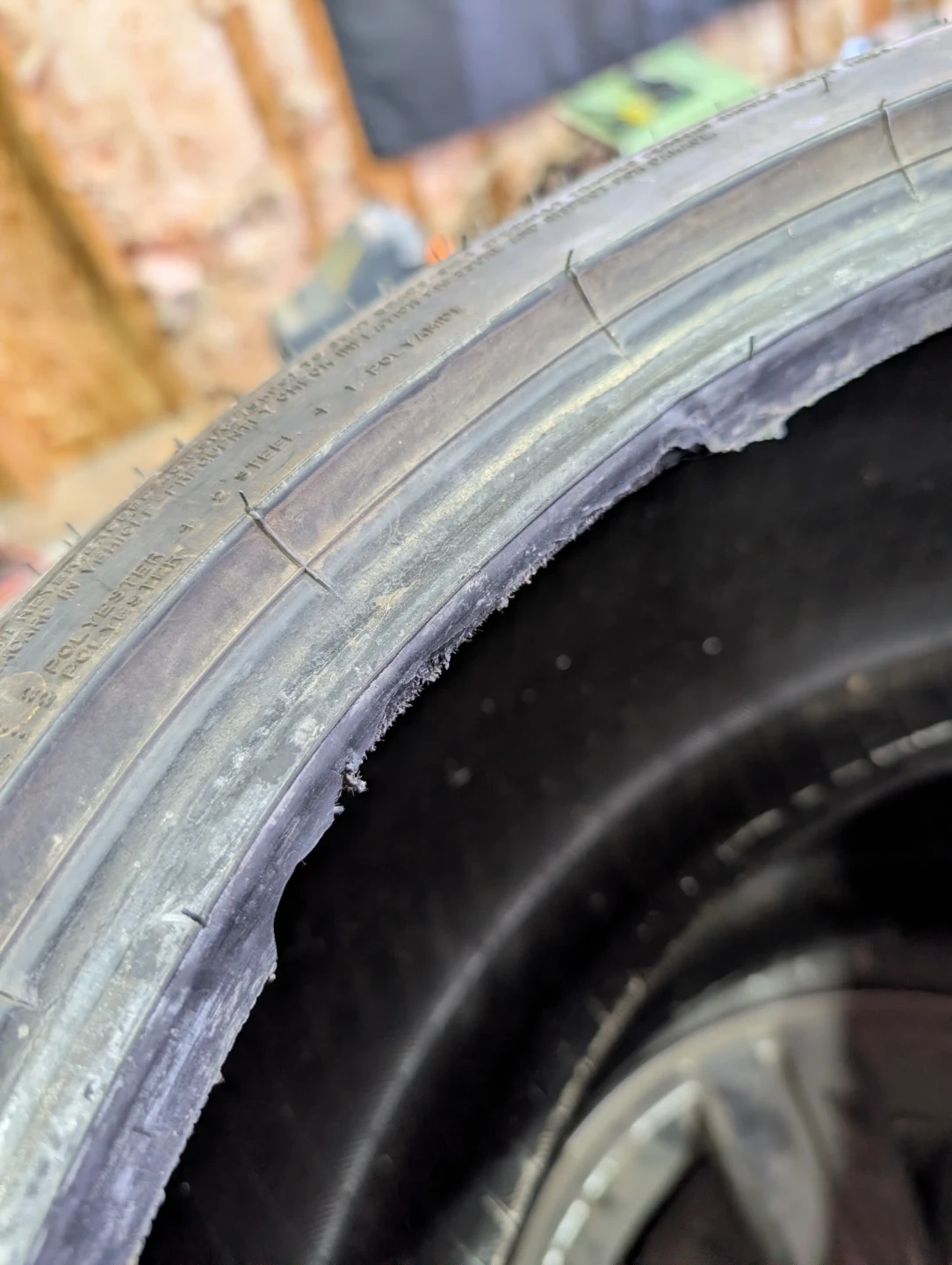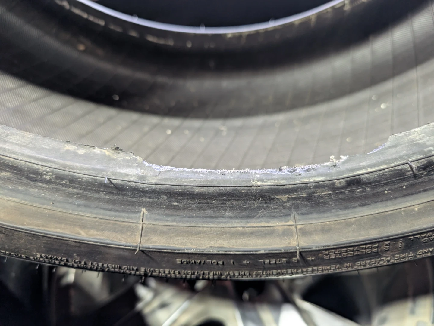 happened when the tire was removed from the rim. Tires are safe to use and are guaranteed to hold air on your rims