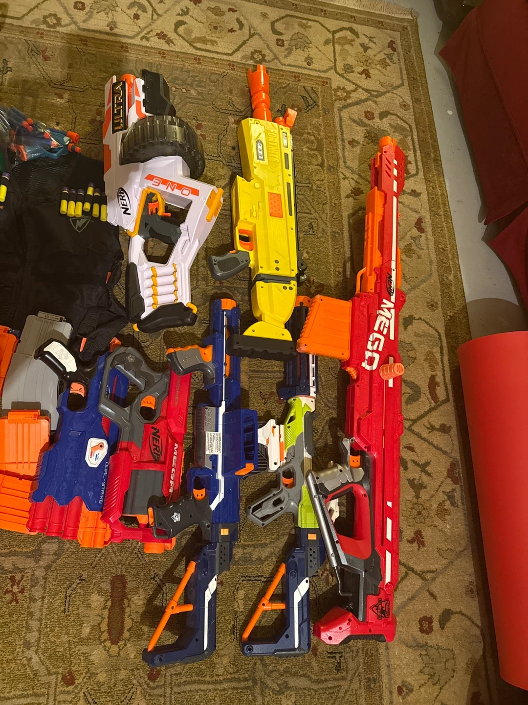 Buy & SellNerf Toy Guns and Accessories BundleNerf Toy Guns and Accessories Bundle$50This bundle includes a variety of Nerf toy guns and accessories like dart clips and a vest. It's all Nerf brand.WHERE TO MEETFalconer DriveView MapSELLERJRStreetsville191 review0 chats·1 favorites·18 viewsSEND CHAT TO SELLERHi JR! I’m interested in your listing.Hi JR! I’m interested in your listing.Get the Karrot app to chatSign In to chat