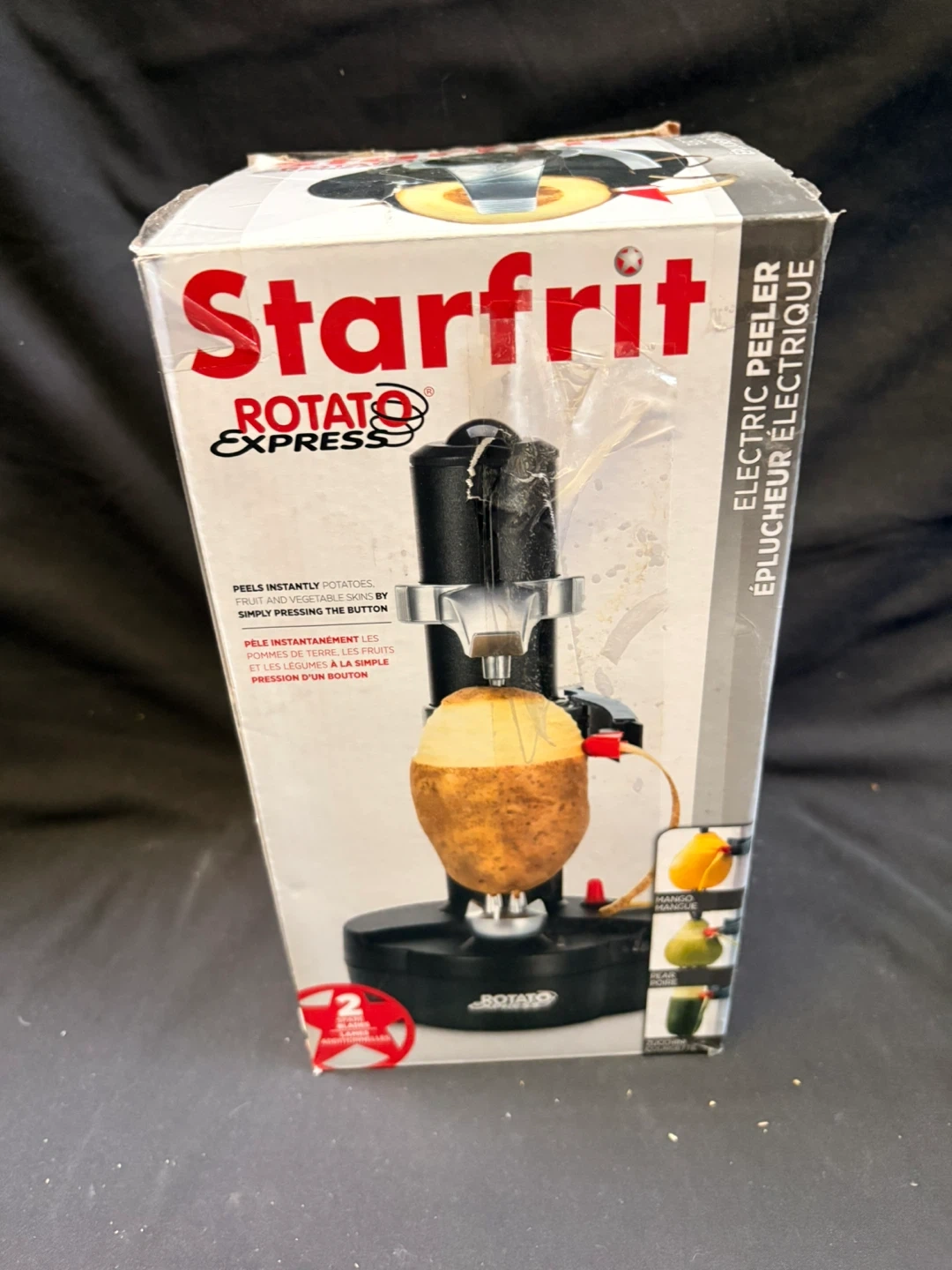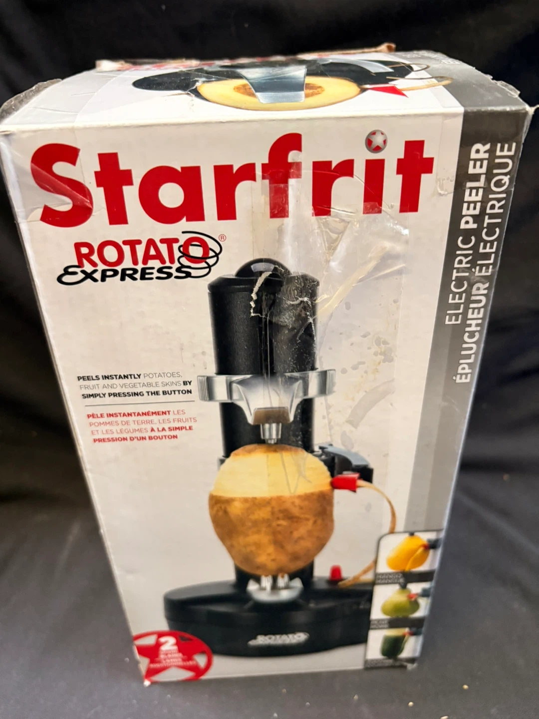 Peels in seconds fruits and vegetables of various shapes and textures. It stops automatically when the motion is complete. Operates with a 6V adaptor or four AA batteries (not included). Perfect for peeling potatoes, apples, citrus, mangos, turnips, pears, cucumbers, kiwis and more!