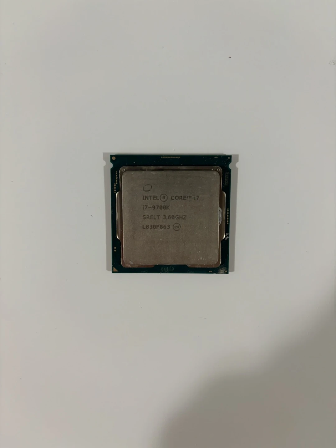 Intel Core i7-9700K processor. Base clock speed of 3.60 GHz. LGA 1151 socket type. It's a desktop CPU.