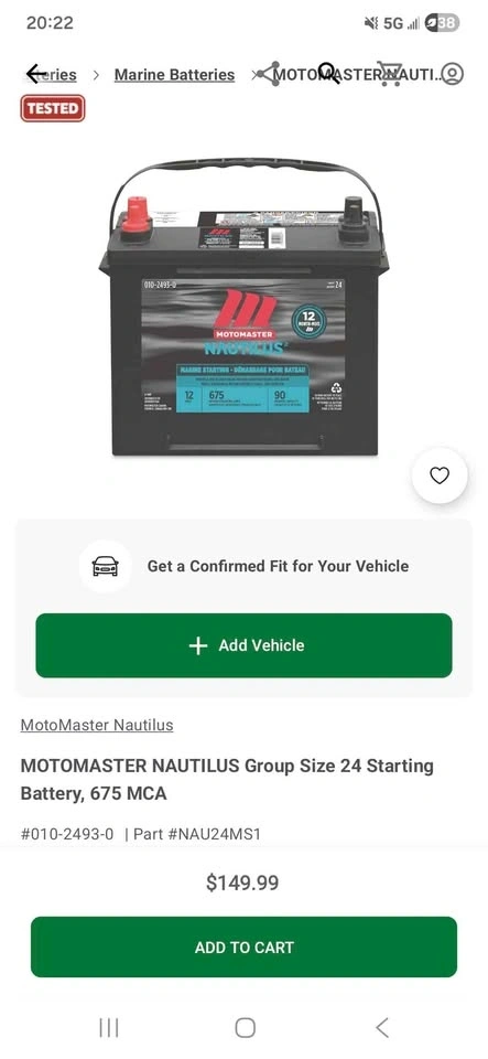 Buy & SellMarine Battery - Group 24Marine Battery - Group 24$100This battery is 2 years old.WHERE TO MEETCheck LocationView MapSELLERMikeLetitia Heights100 reviews0 chats·0 favorites·4 viewsSEND CHAT TO SELLERHi Mike! I’m interested in your listing.Hi Mike! I’m interested in your listing.Get the Karrot app to chatSign In to chat