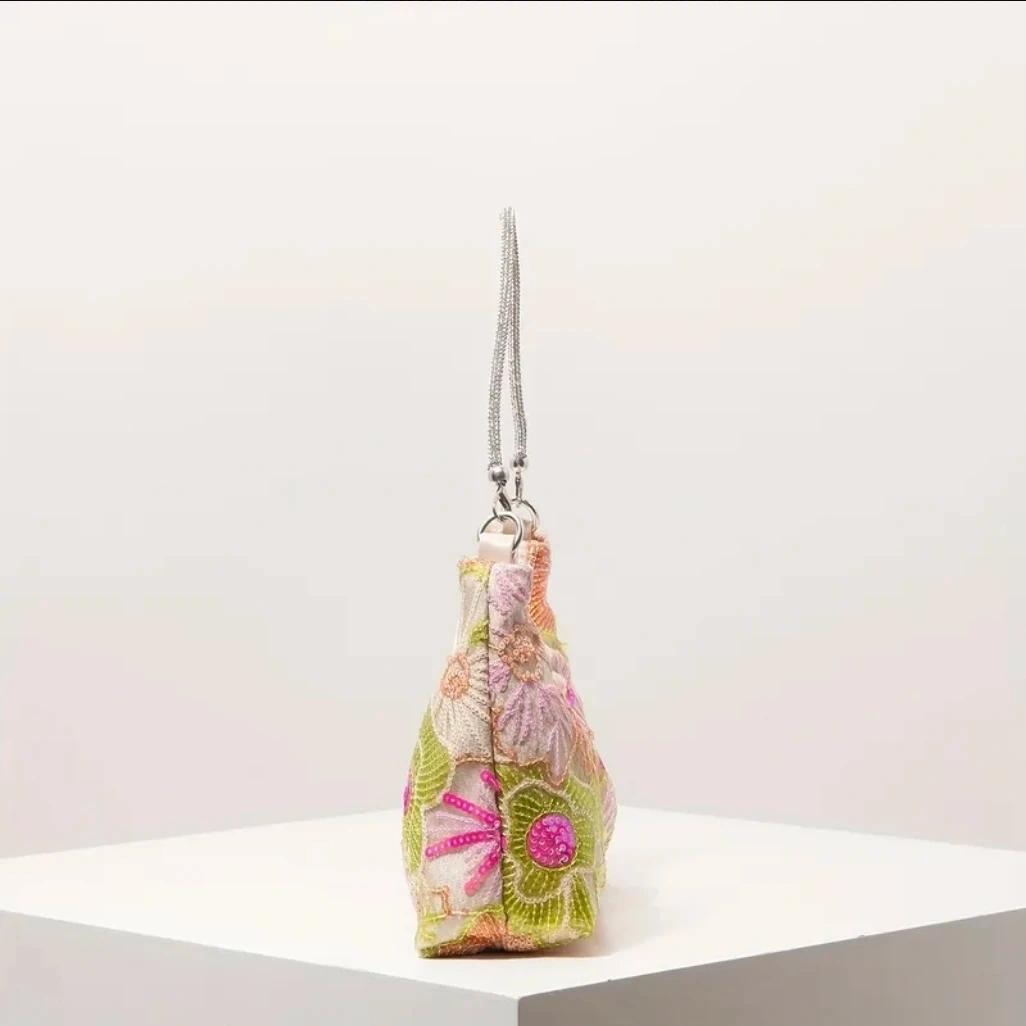 Floral Sequin Embroidered Hand Bags removable diamond strap